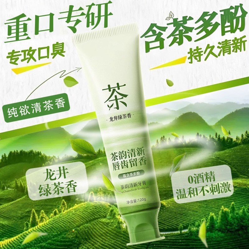 龙井绿茶牙膏美白去黄去口臭清新口气护龈亮白防蛀牙口腔茶多酚