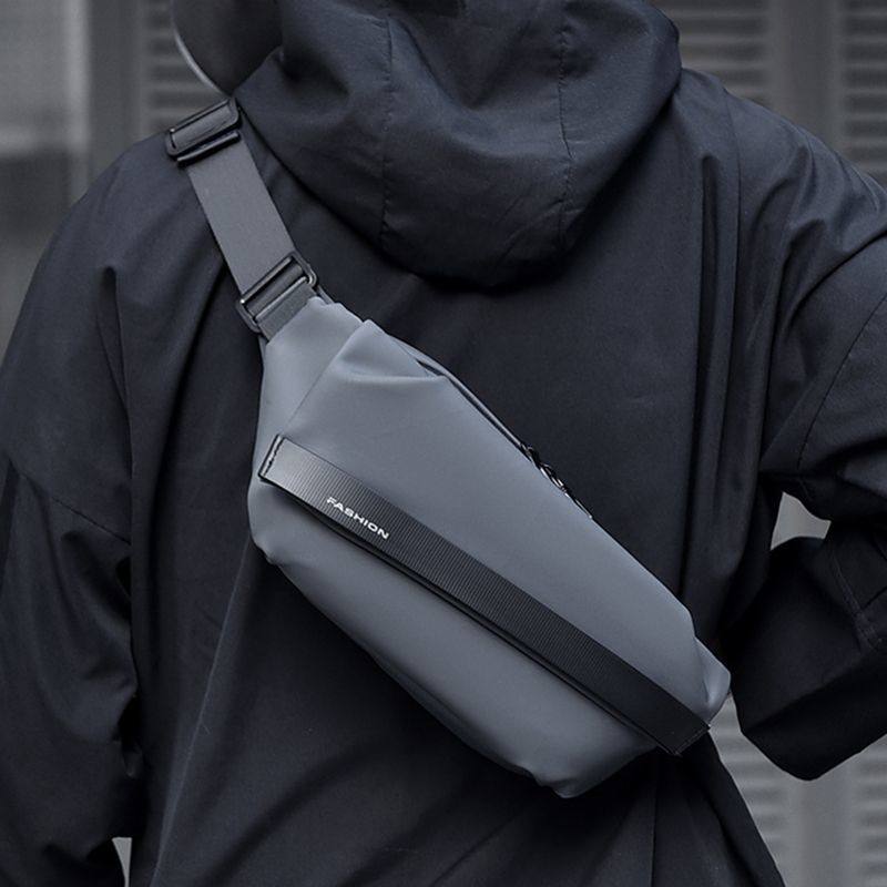 2025新款男士斜挎包防水运动单肩包休闲大容量胸包磁吸扣通勤时尚