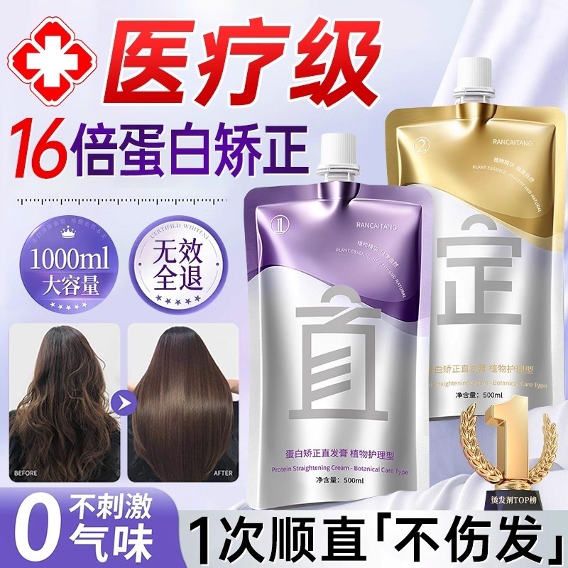 蛋白矫正直发膏免拉家用头发拉直顺软化剂柔顺剂毛躁定型烫发刘海