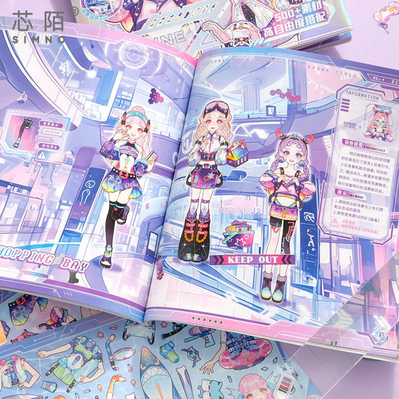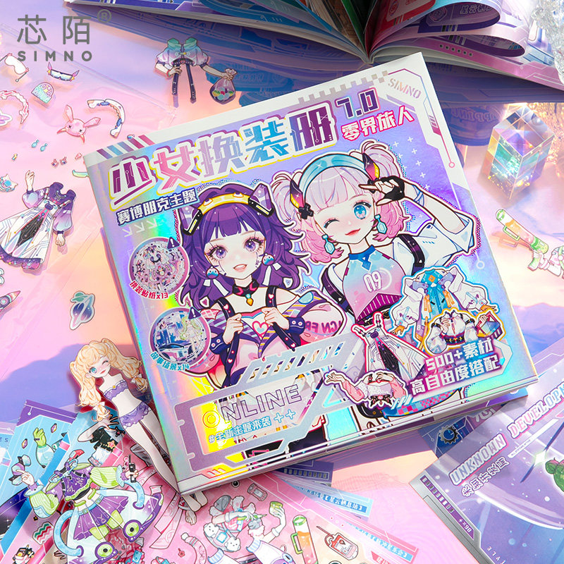 芯陌赛博朋克换装贴纸本新款高颜值换装贴纸书可爱卡通儿童diy手杖贴纸本公主换装衣橱贴纸册女孩手工diy玩具