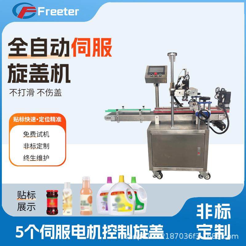 全自动伺服直线式四轮旋盖机流水线塑料瓶拧盖机搓盖机高速锁盖机