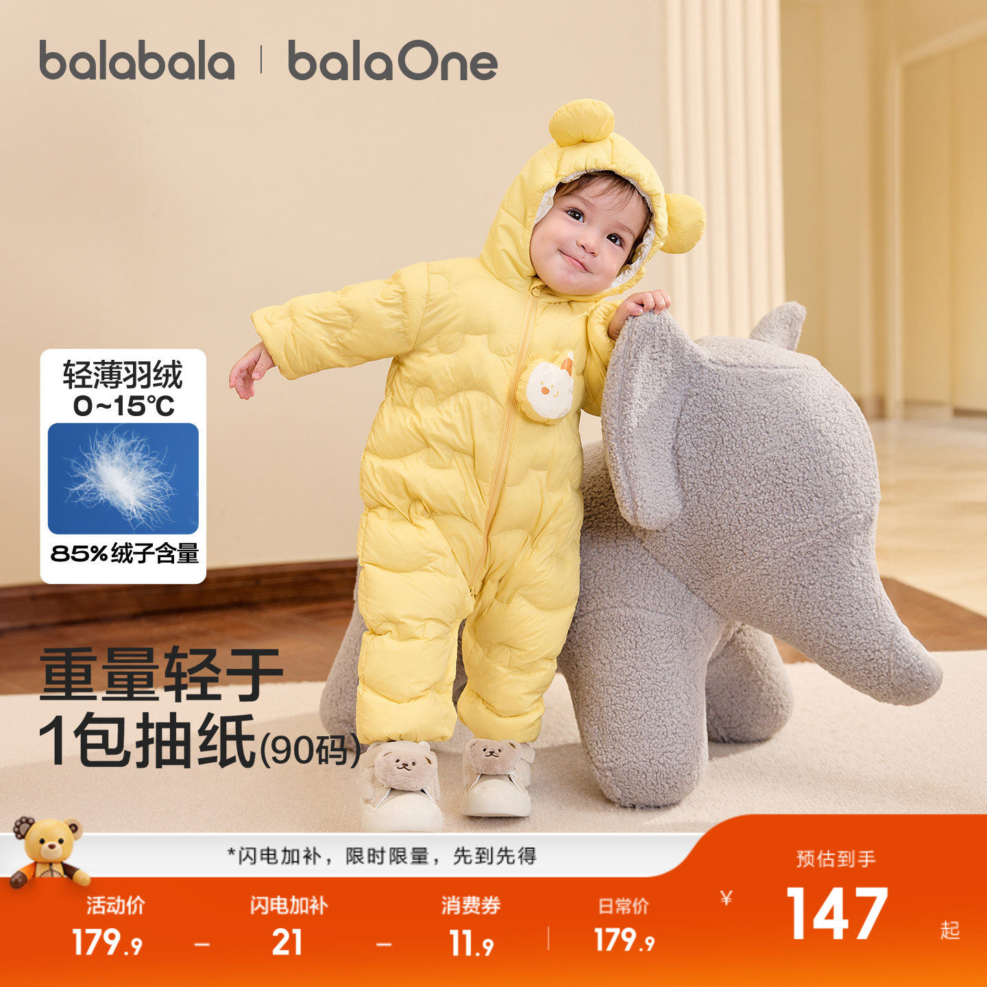 巴拉巴拉儿童轻薄羽绒服男女童婴儿连体衣2025新款宝宝冬装造型萌
