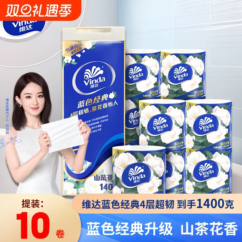 【孙颖莎推荐】维达卷纸蓝色经典卫生纸巾四层家庭装有芯卷纸厕所