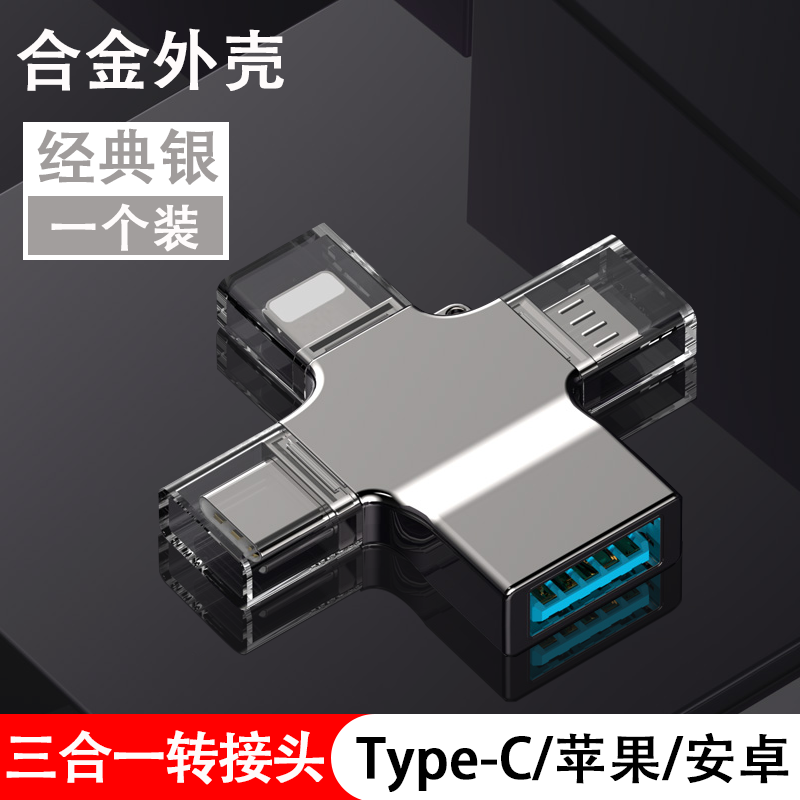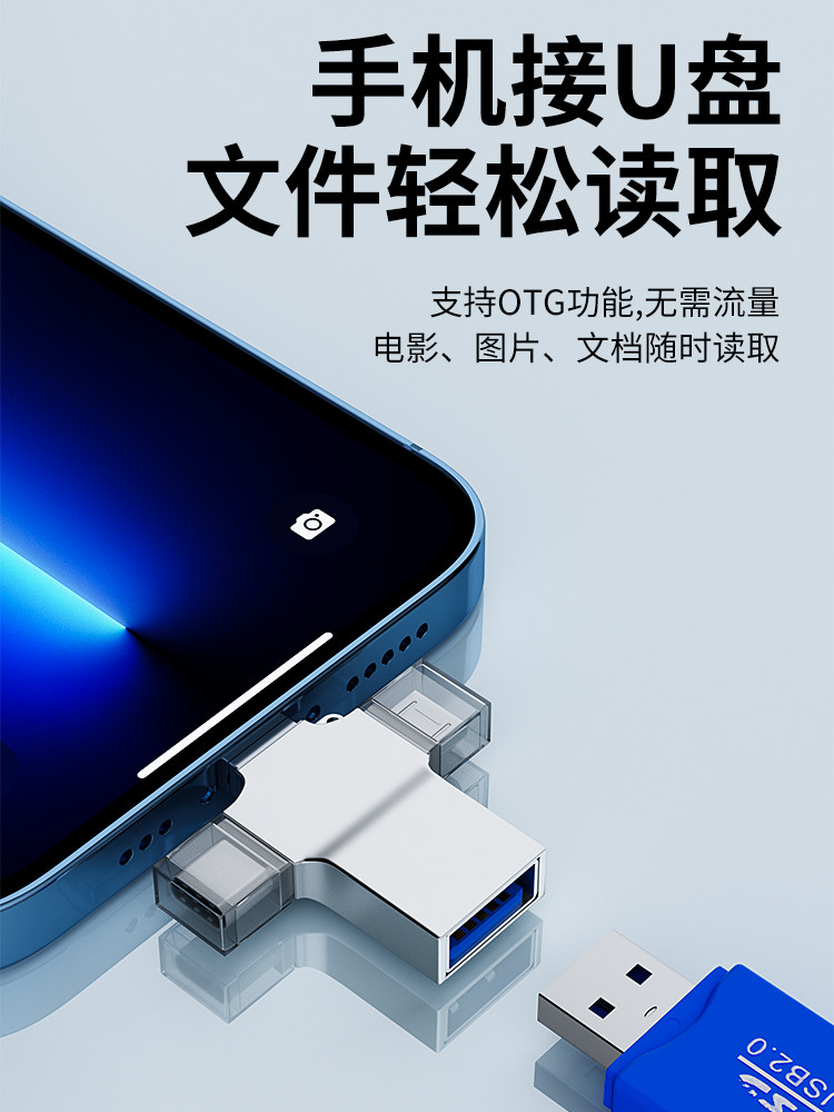 三合一OTG转接头手机u盘转换器多功能数据线tpc连接ipad优盘usb3.0接口适用于苹果安卓typec华为iphone14pro