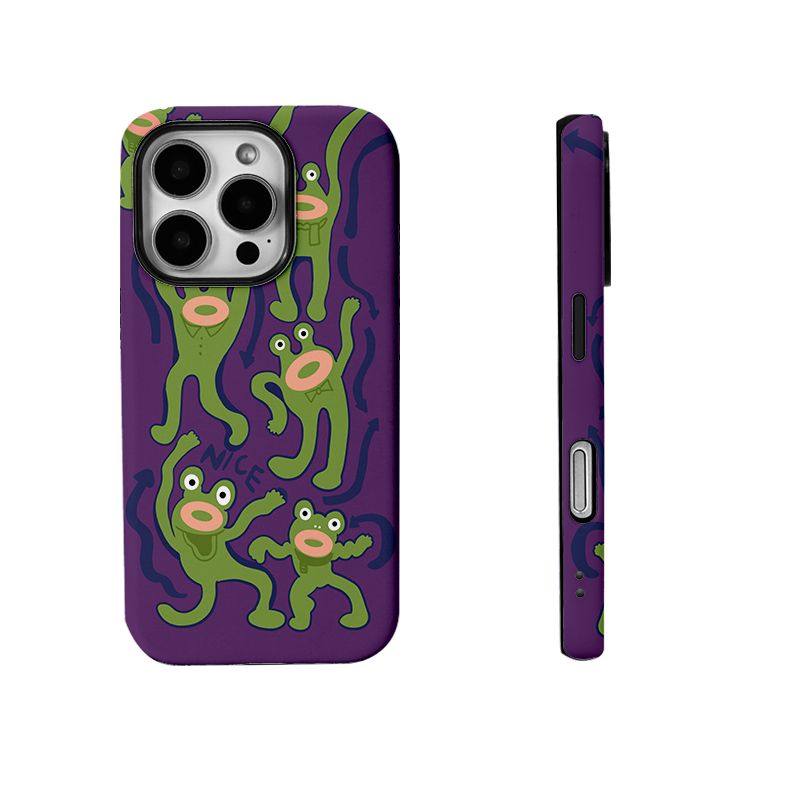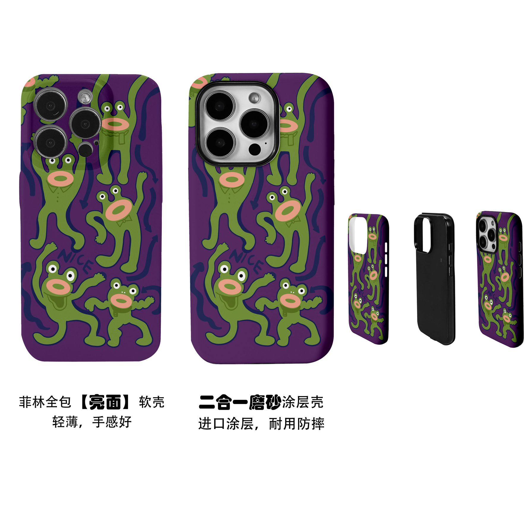 搞怪可爱蛙紫色撞色酷菲林二合一手机壳适用苹果17nova14华为p70mate60小米15opporen14ovivo荣耀300iPhone16