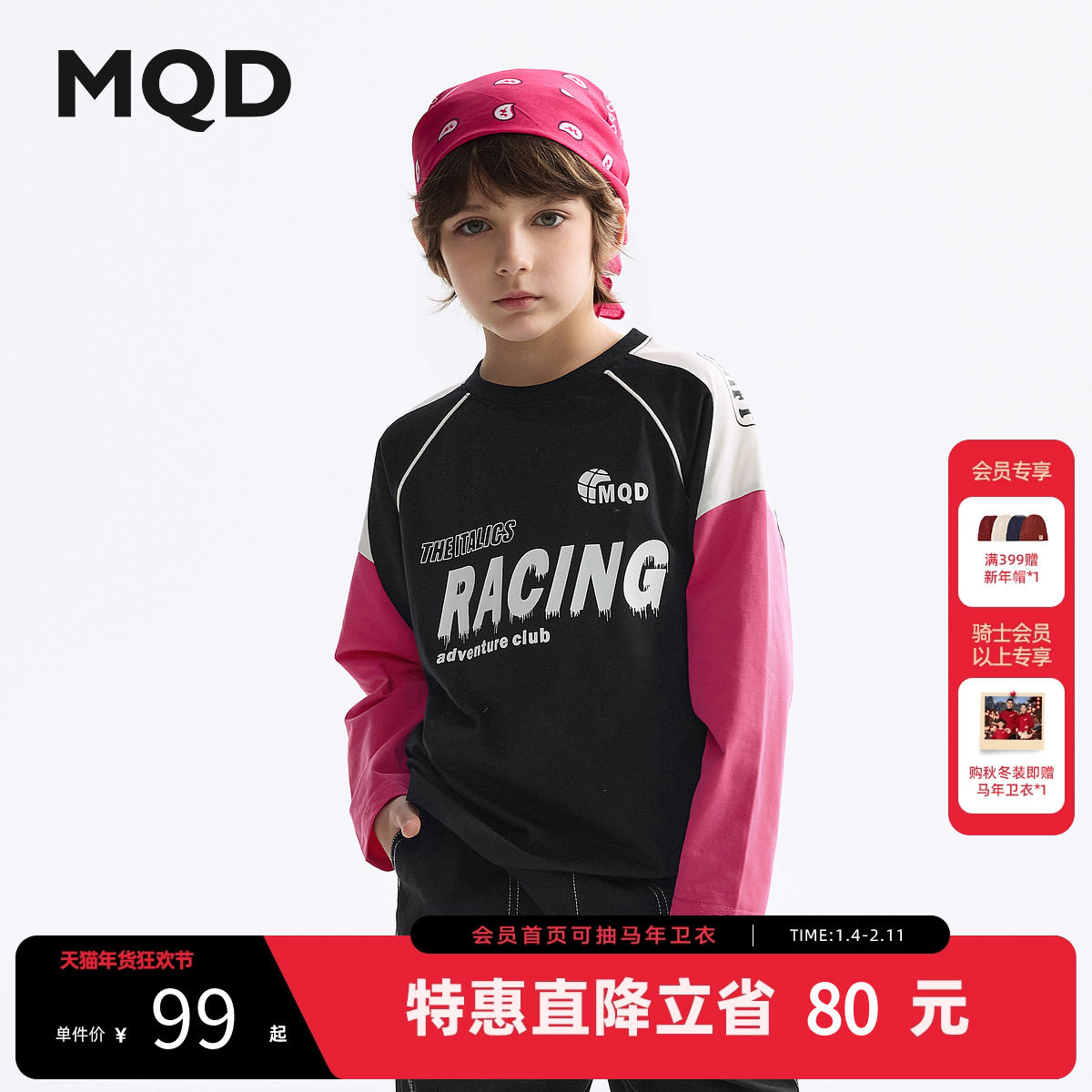 MQD童装男童长袖t恤2025新款宝宝春装儿童打底衫撞色潮女童T恤