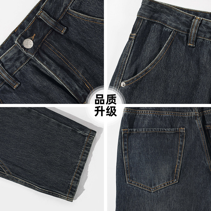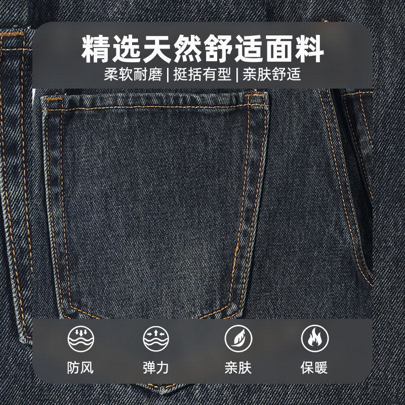 吉普专柜秋冬季新款复古牛仔裤男宽松直筒大码加绒加厚水洗长裤子