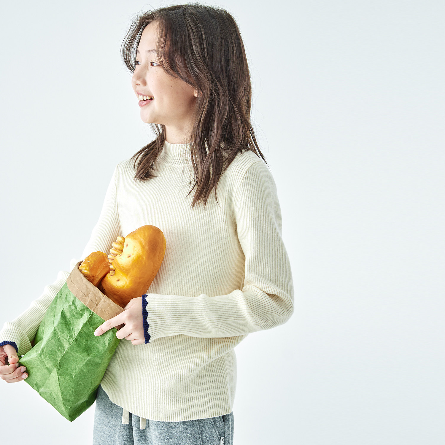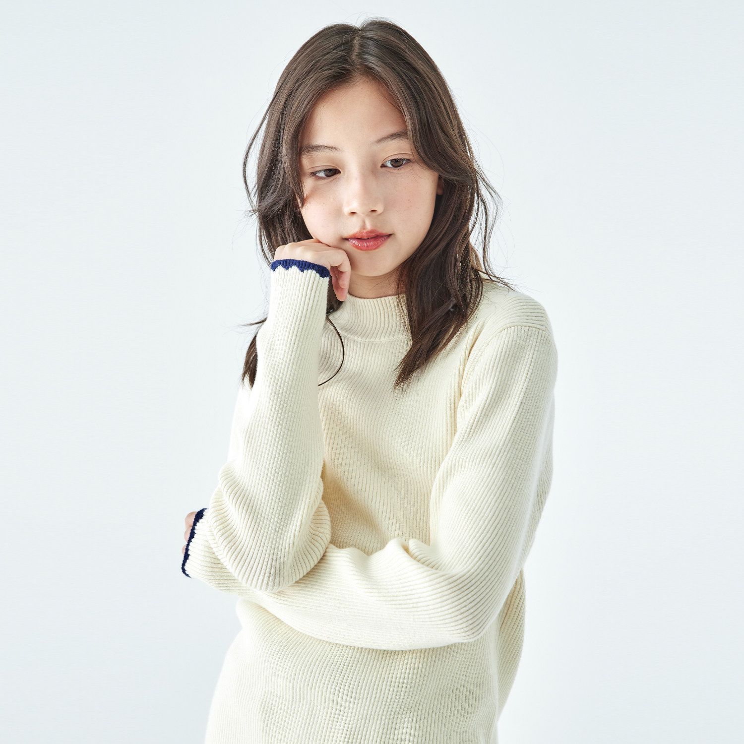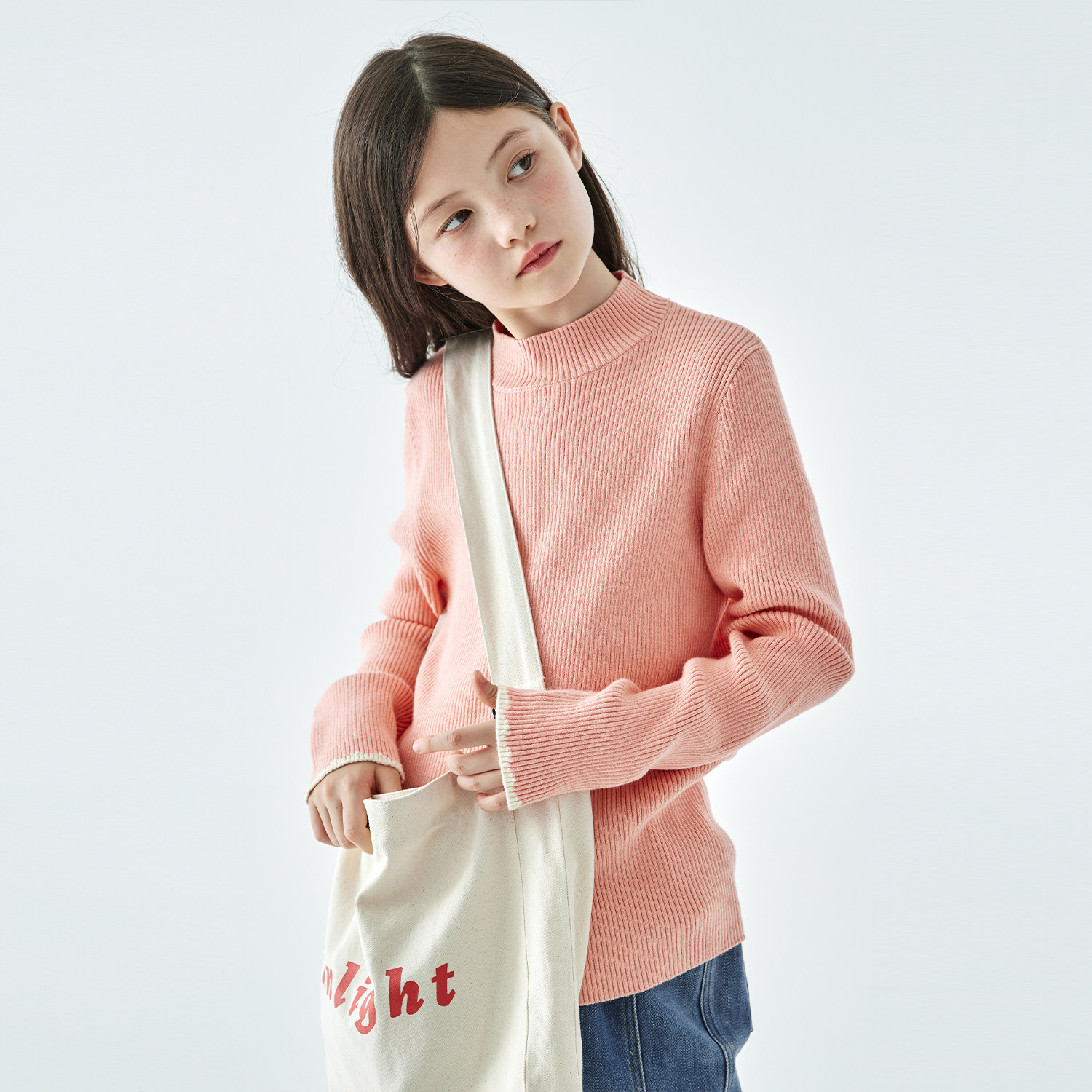 棵初2025年秋冬季新款亲子中大女童纯色半高领毛衣亲肤棉感针织衫