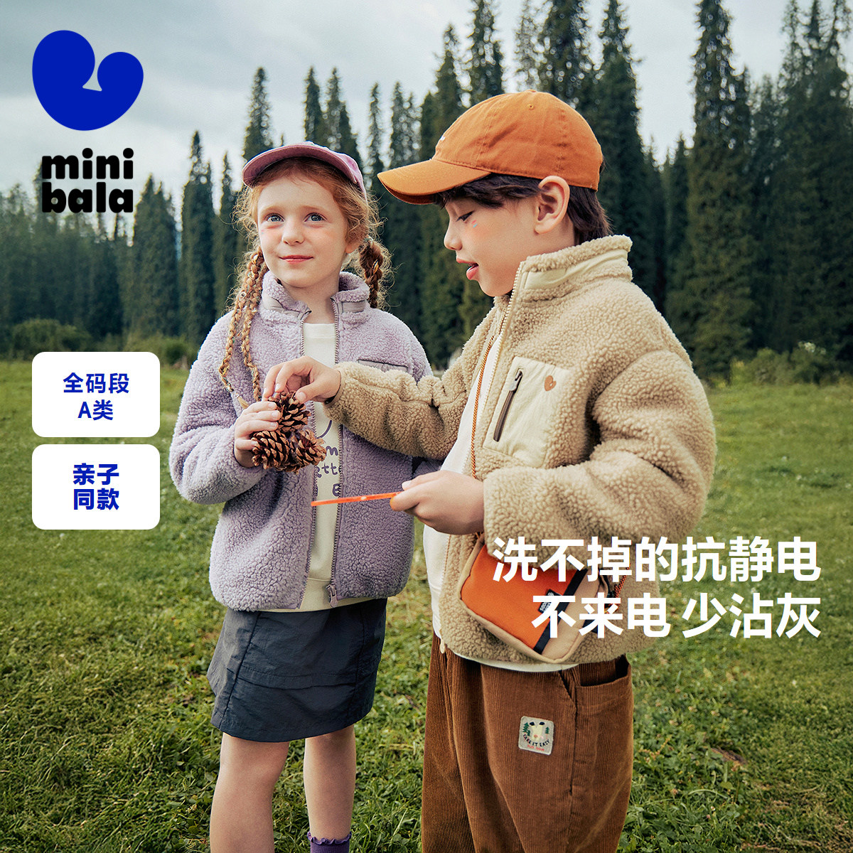 迷你巴拉巴拉男女童亲子抗静电毛绒外套摇粒绒保暖户外风2025秋新
