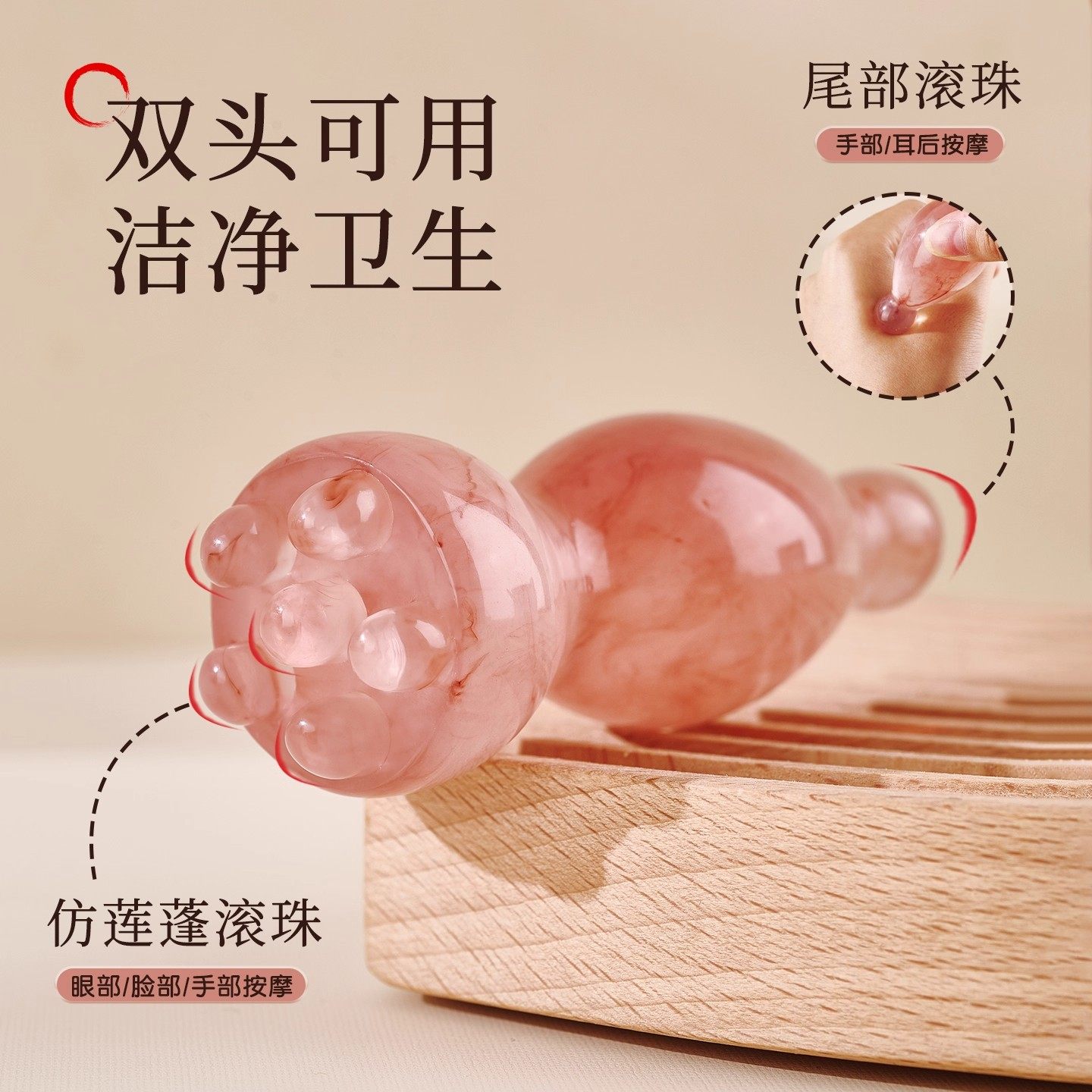 小莲蓬眼部按摩器天然木黄铜珠面部按摩棒双头拨筋点穴位护肤放松