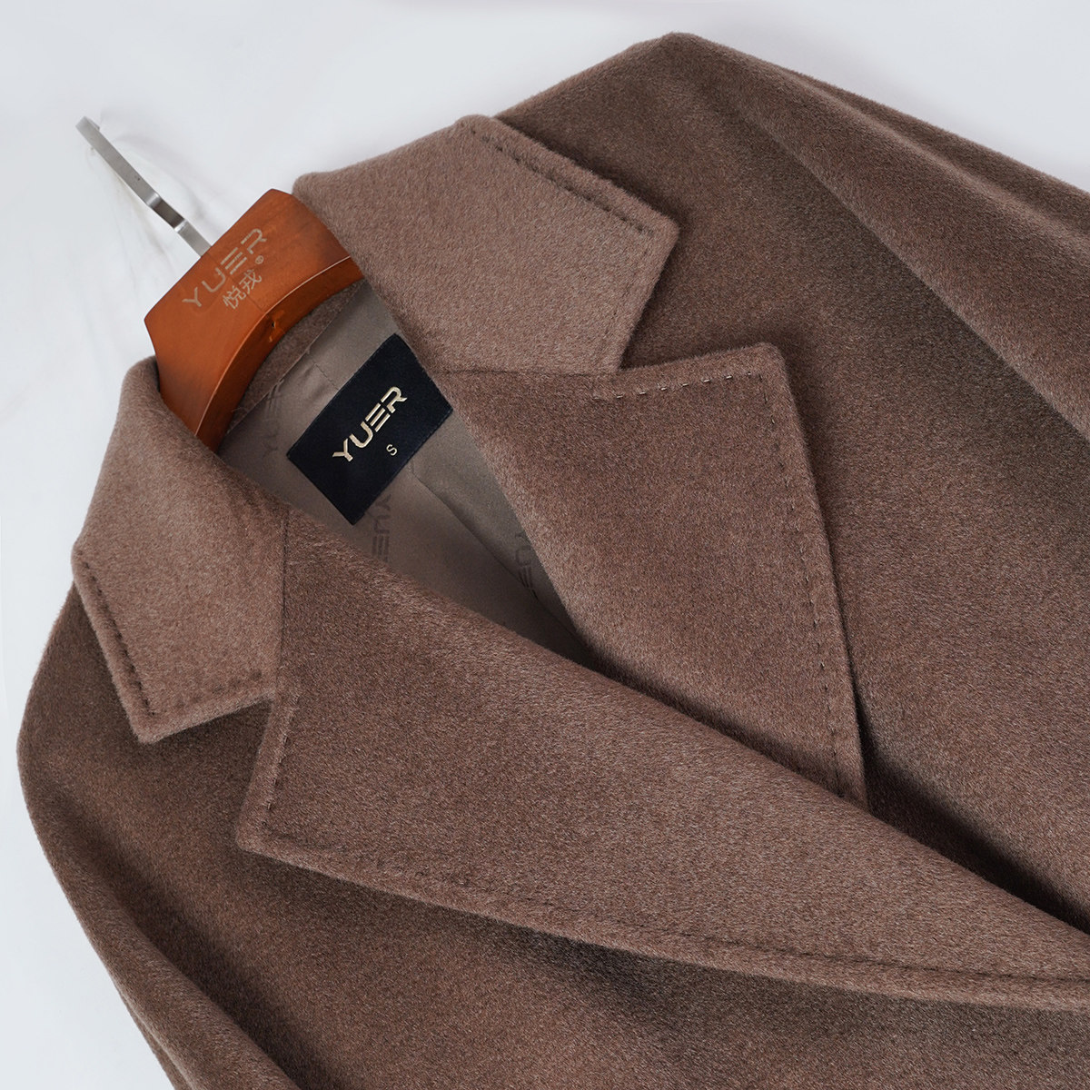 悦戎2025秋冬新款女士紫绒大衣西装领100%山羊绒毛呢外套中长款