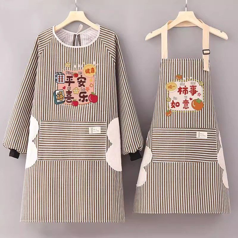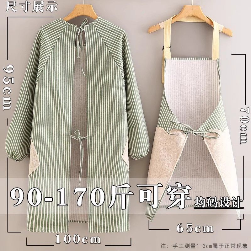新款棉布耐磨围裙长袖厨房家用防污罩衣透气围腰做饭上班工作服女