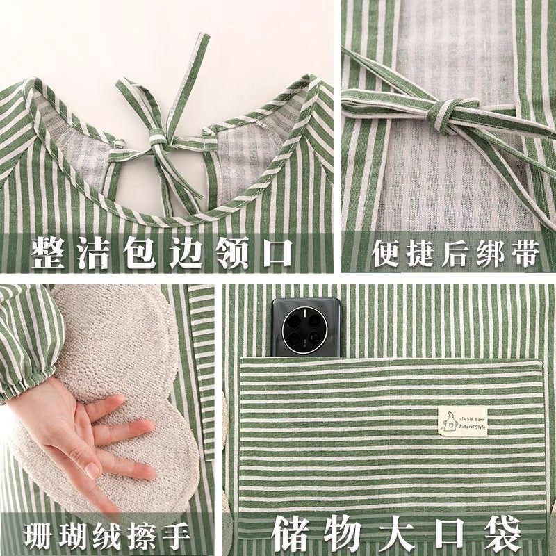 长袖棉麻围裙厨房家用2025新款做饭反穿罩衣大人透气防脏工作服女