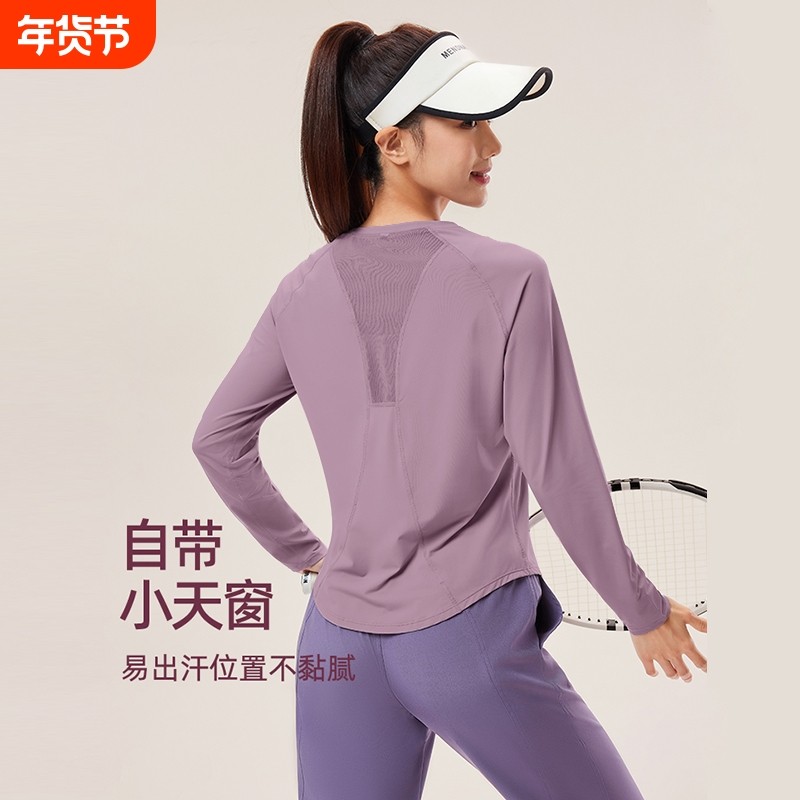 瑜伽服T恤女秋显瘦紧身修身女款速干透气运动长袖上衣健身服网纱