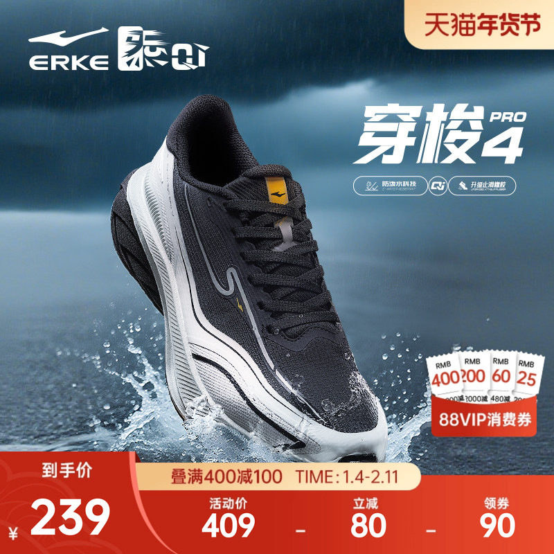 穿梭4pro鸿星尔克防泼水跑步鞋冬季新款运动鞋男鞋黑男士减震跑鞋
