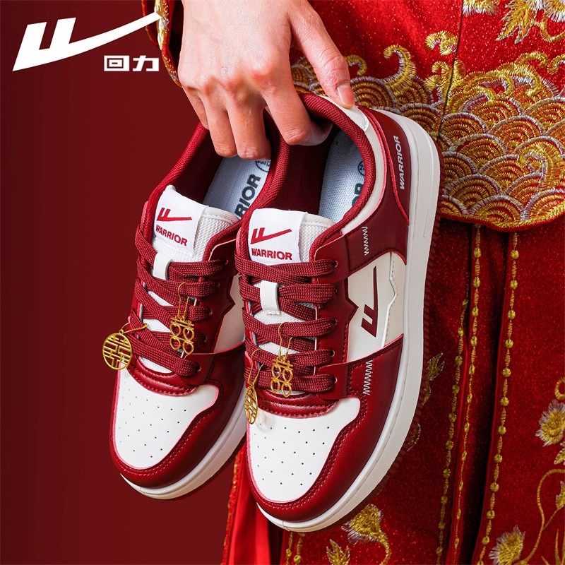 回力婚鞋女2025新款订婚运动鞋平底秀禾鞋结婚板鞋中式红色新娘鞋