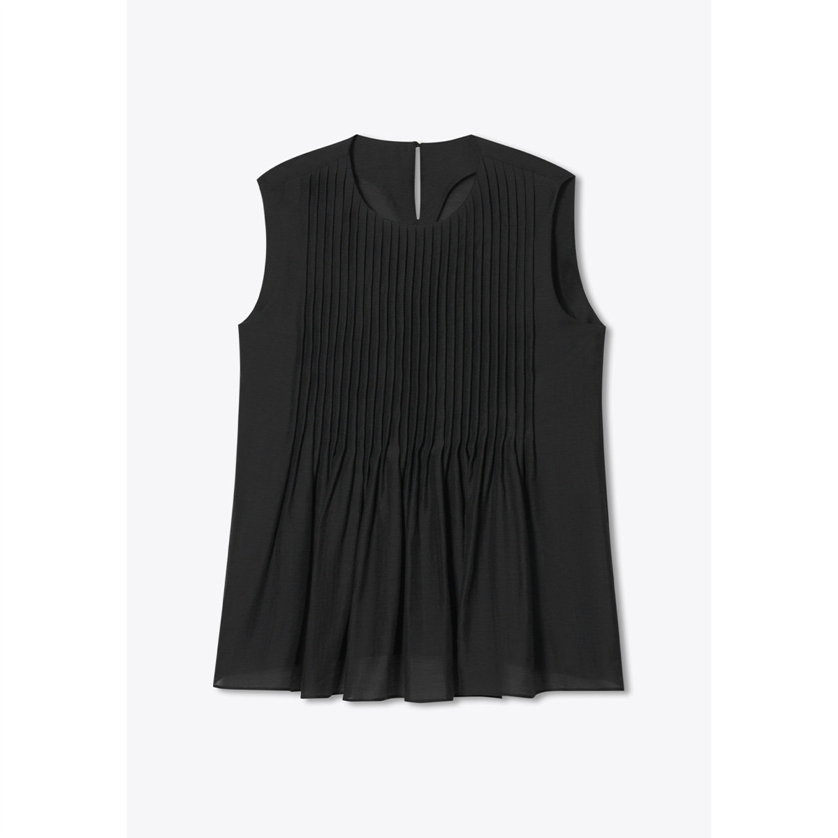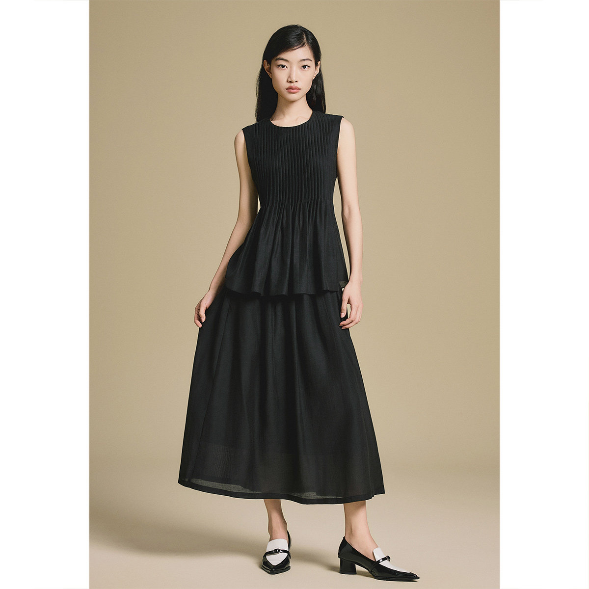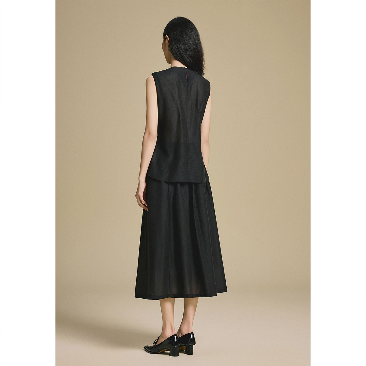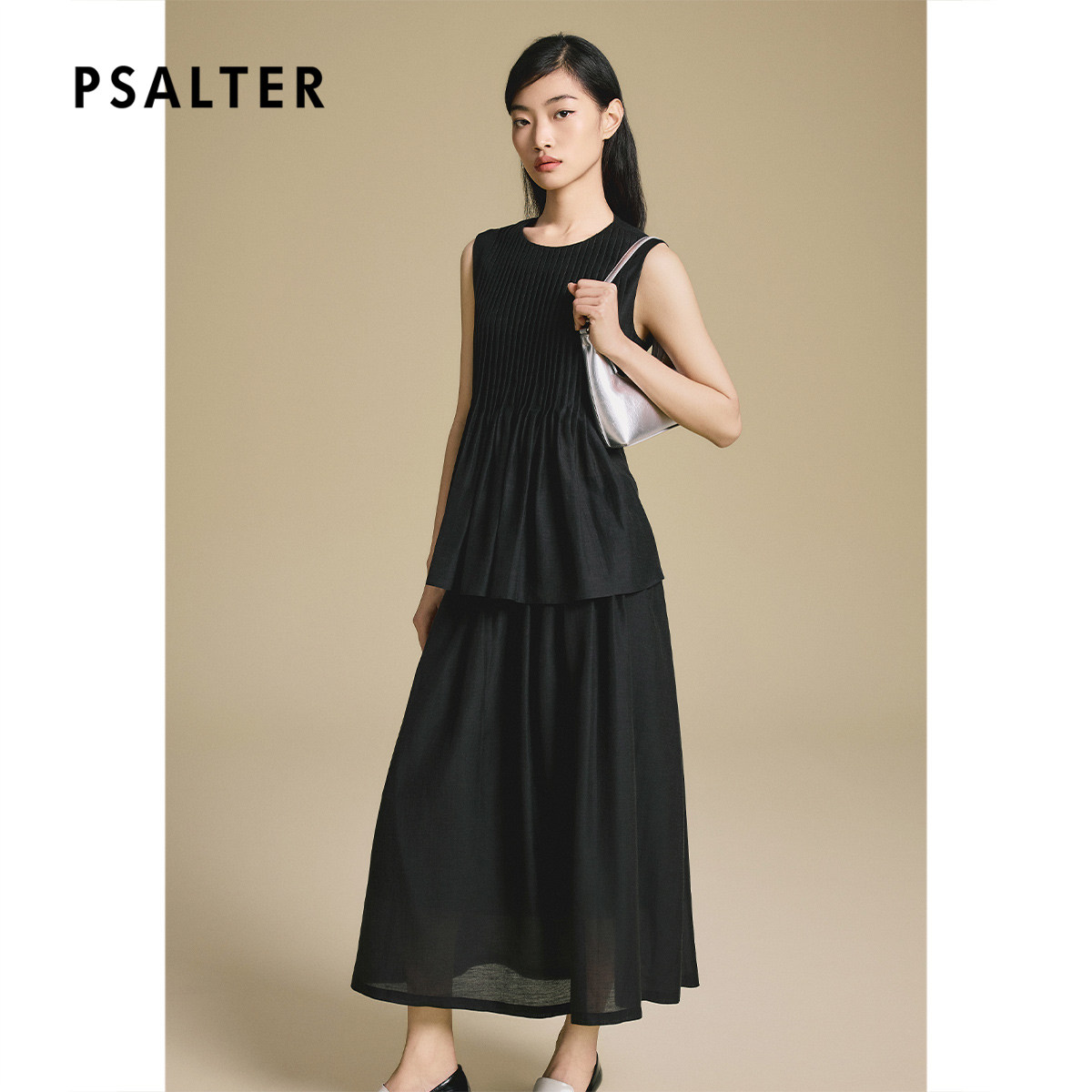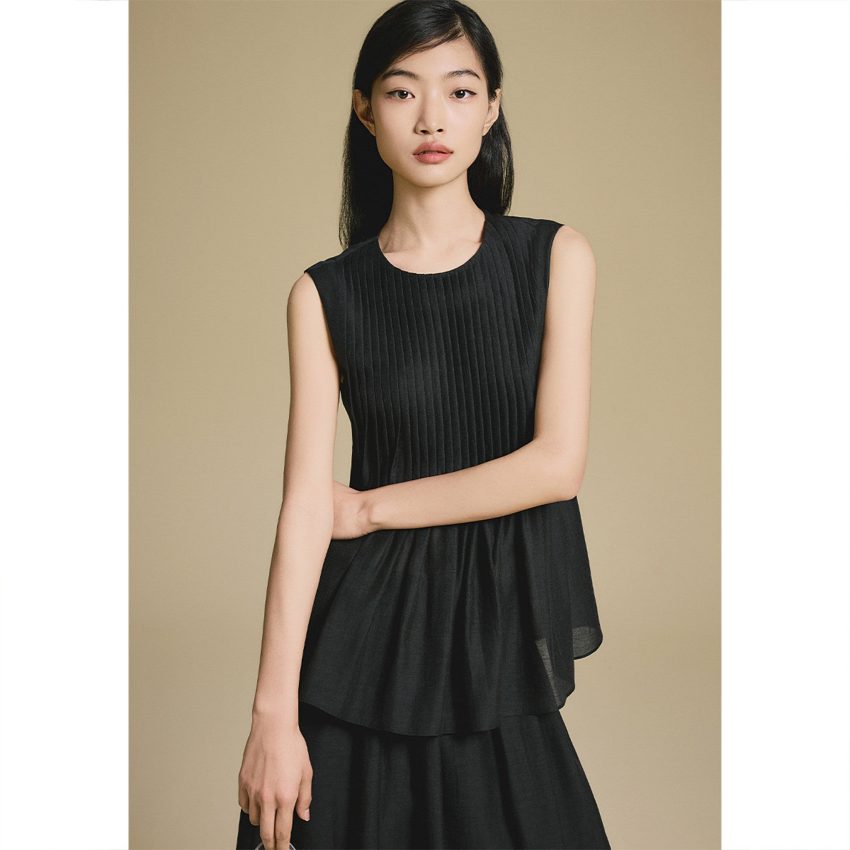 诗篇专选手风琴百褶亚麻醋酸天丝宽松无袖背心女2025夏季新款