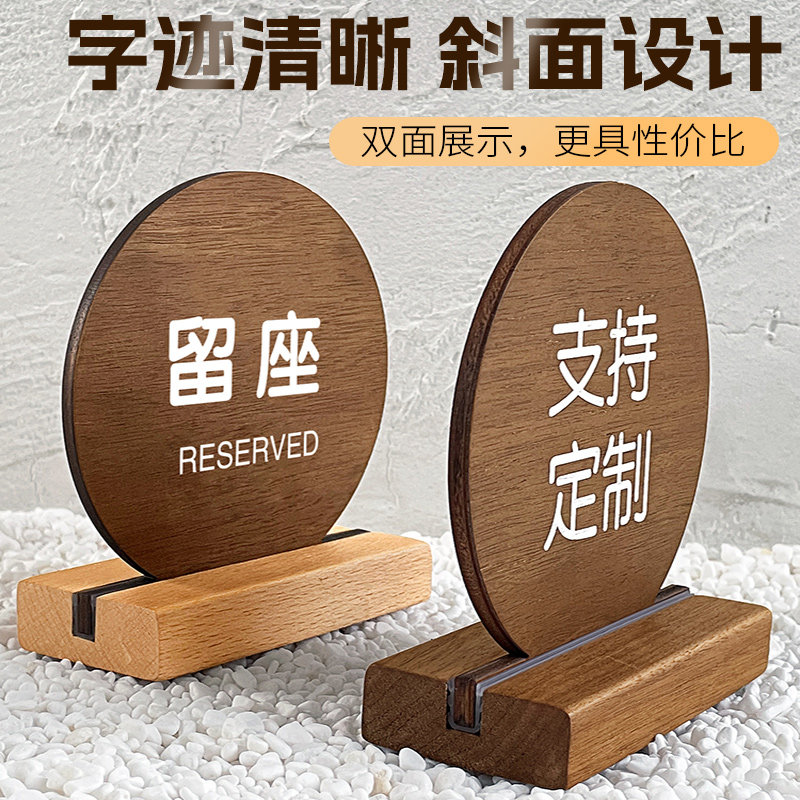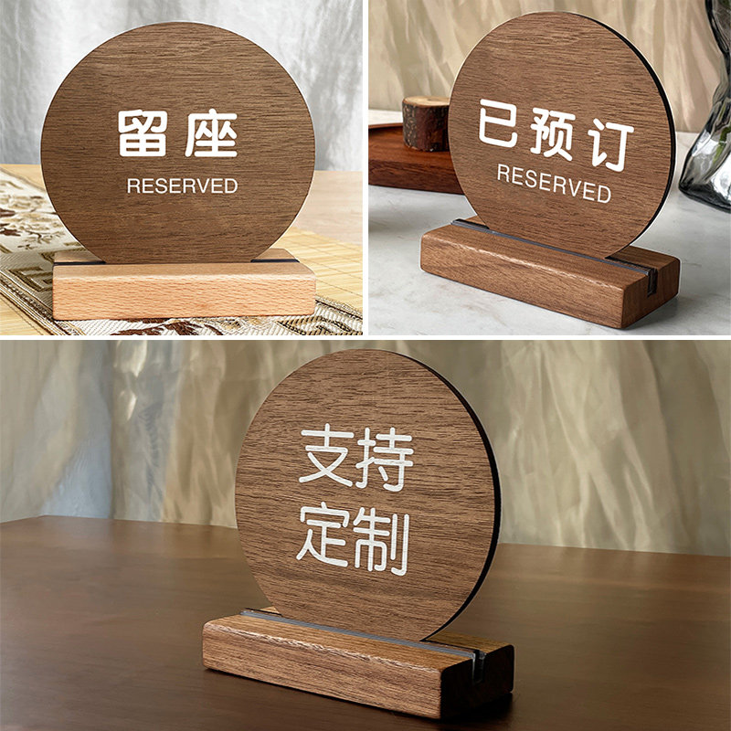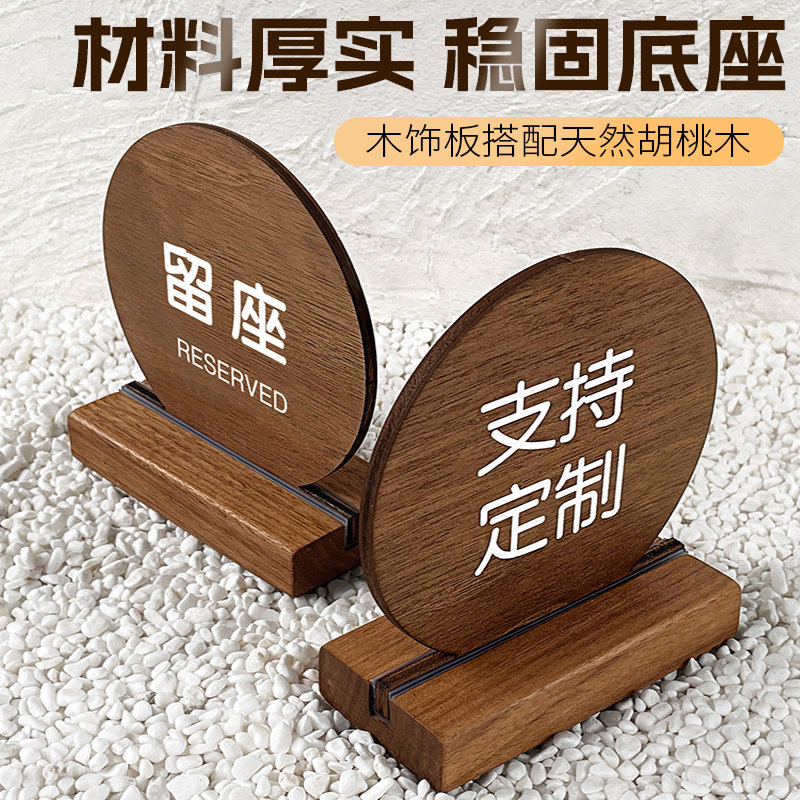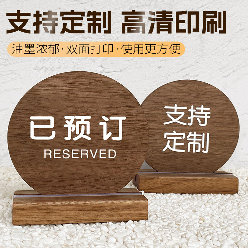 胡桃木留座牌预订提示桌牌已预订留位餐饮台号留座双面立牌桌子桌面预定订座预约展示牌定制餐号桌卡立式订制
