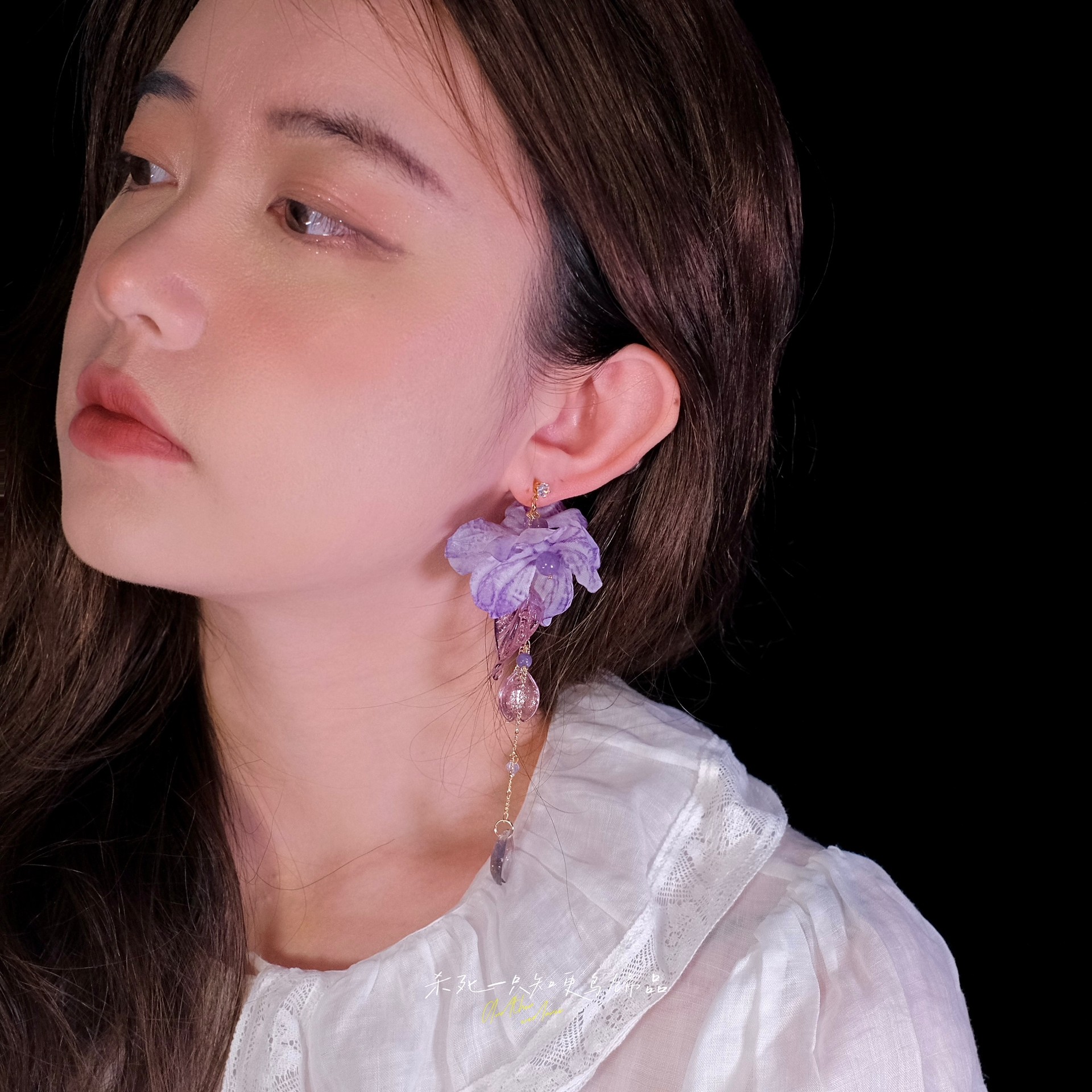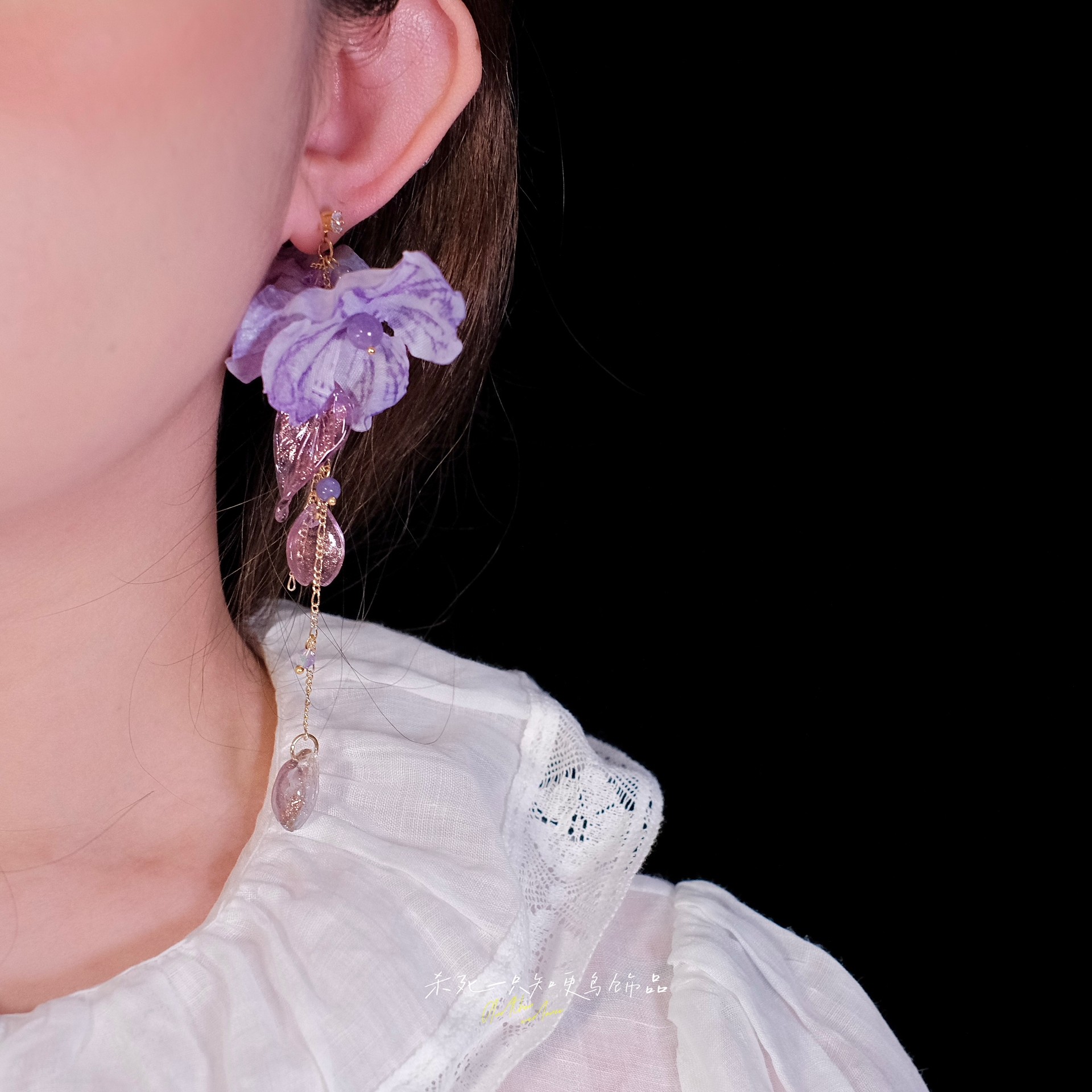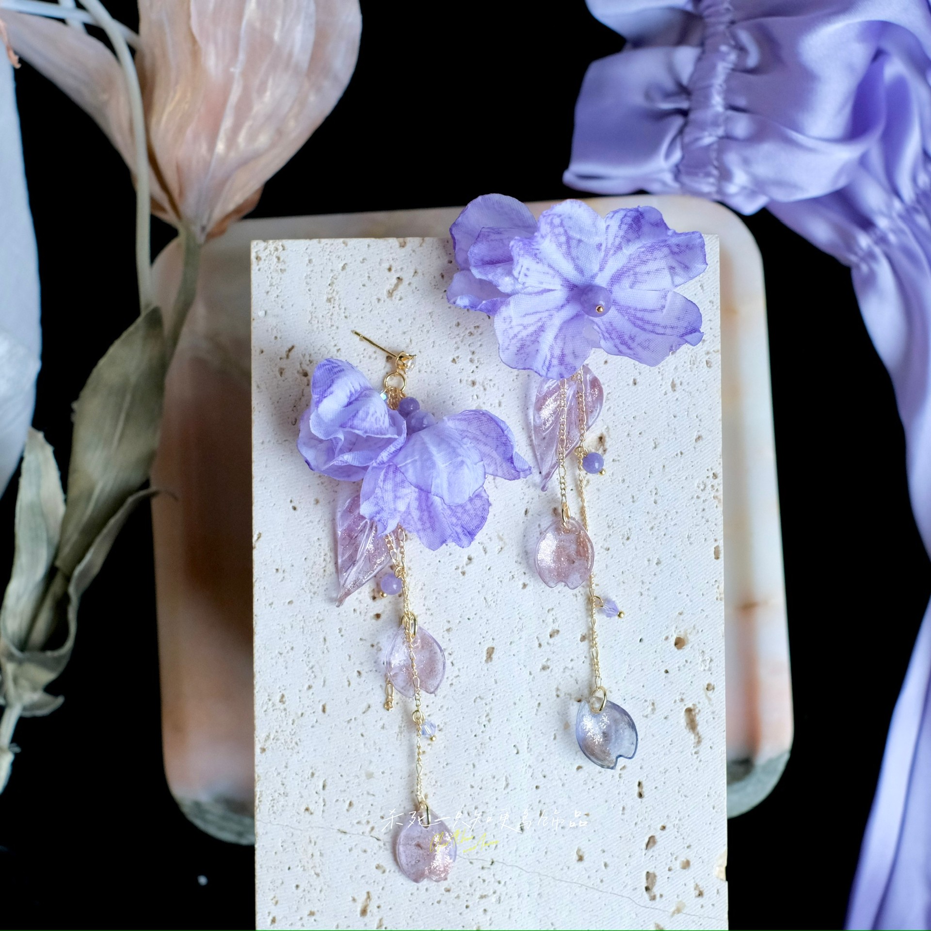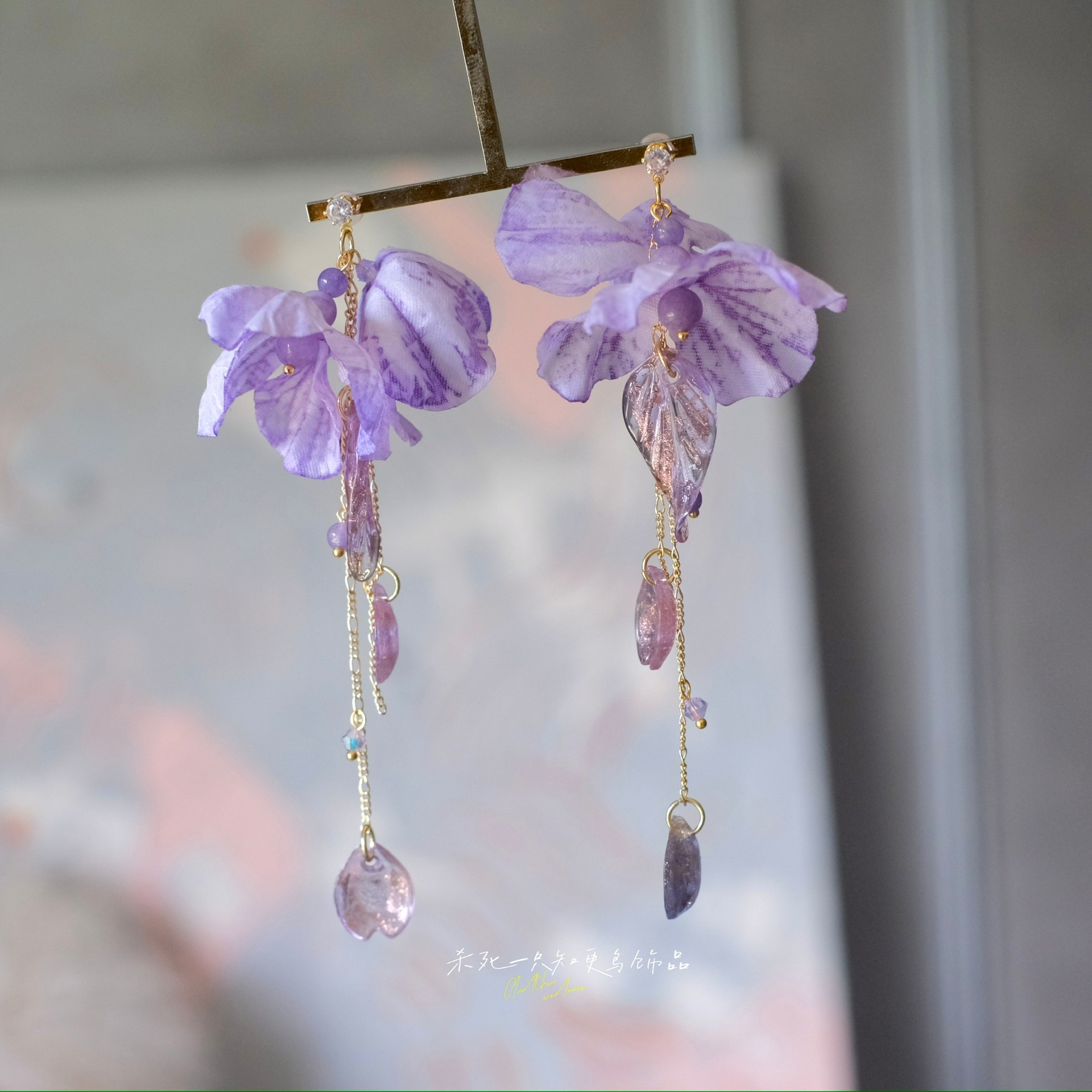 《紫云垂露》原创仙气氛围感夏天紫色花朵流苏长款耳环耳饰耳夹女