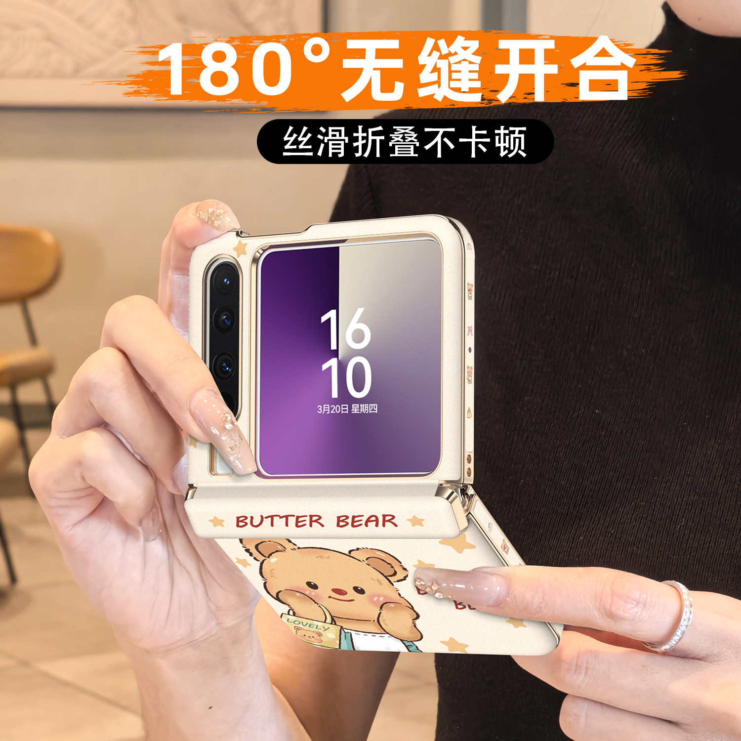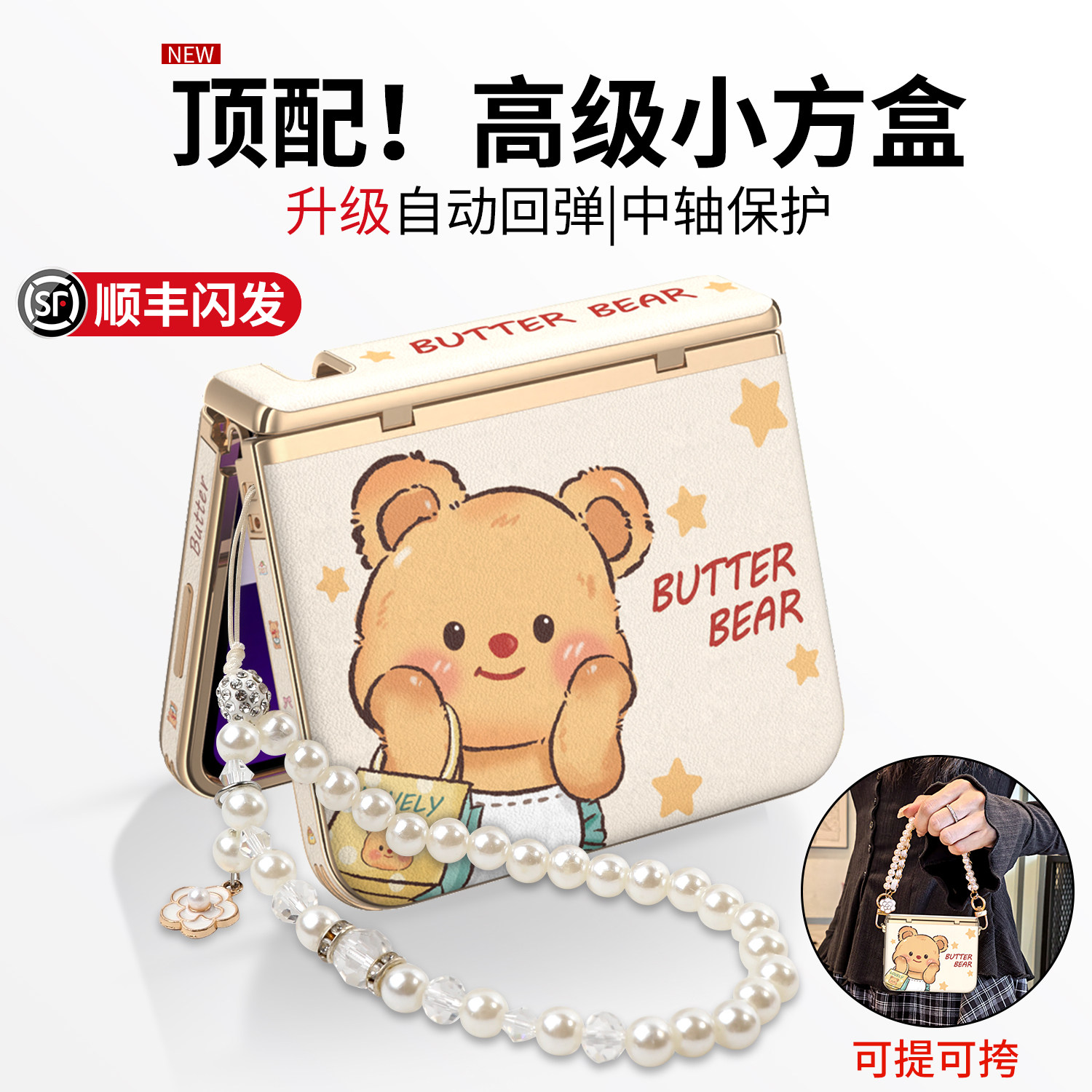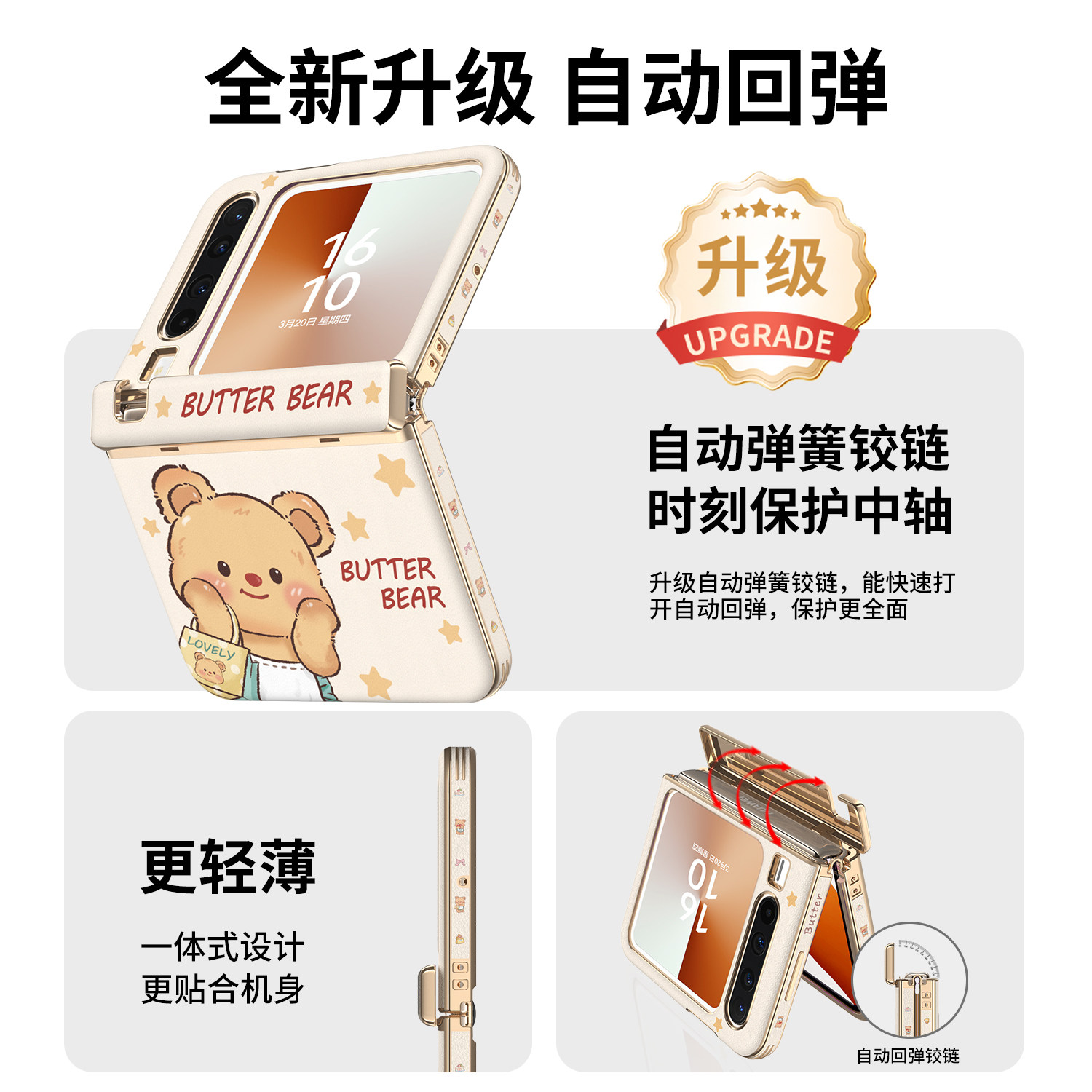 【中轴铰链全包】黄油熊适用华为purax手机壳新款Prua典藏版胖磁吸防摔x阔折叠屏带挂绳手拎链条全包镜头卡通