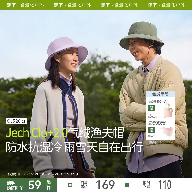 蕉下气绒保暖渔夫帽秋冬女款防风显脸男女通用防水登山户外冷帽子
