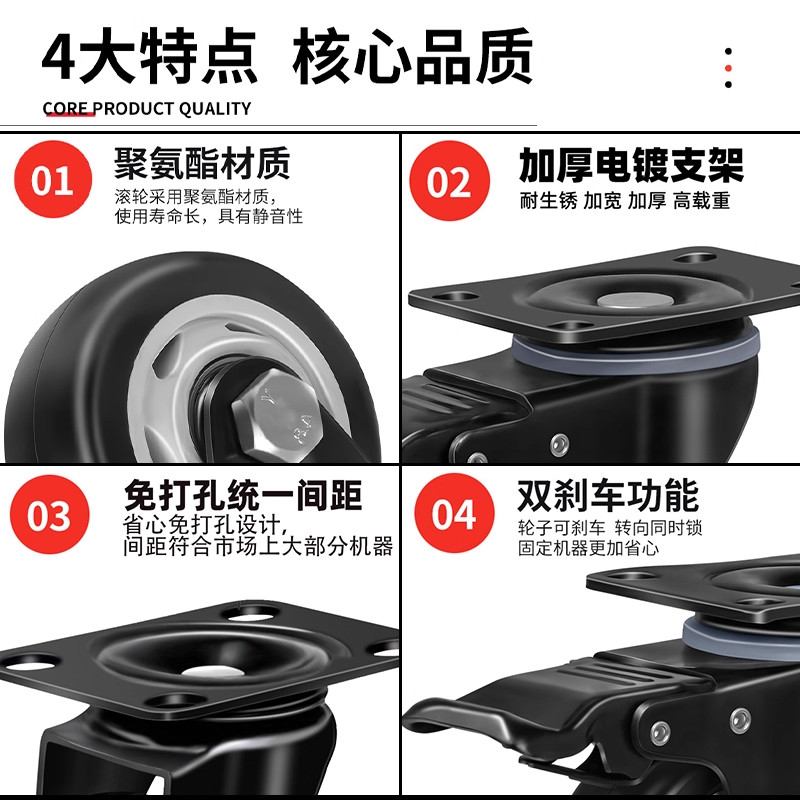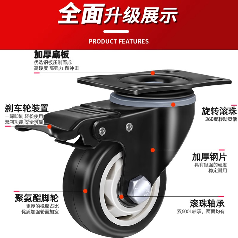 脚轮1.5寸2寸2.5寸3寸万向轮静音脚轮刹车轮子定向轮家具轮箱包轮