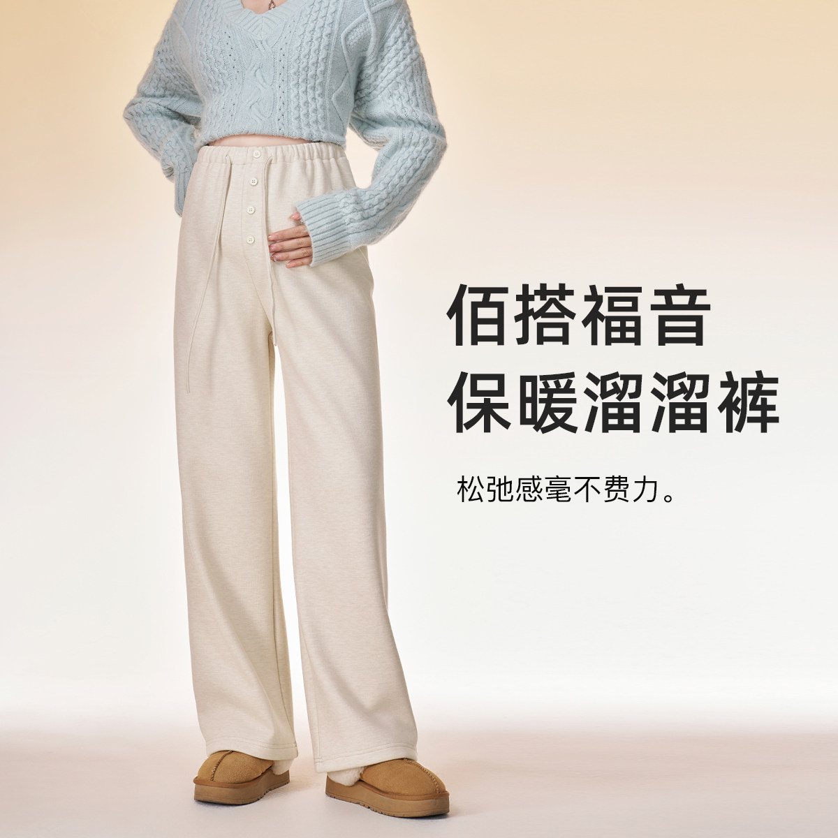 英氏孕妇休闲裤子秋冬外穿加绒保暖阔腿裤2025新款显瘦百搭直筒裤