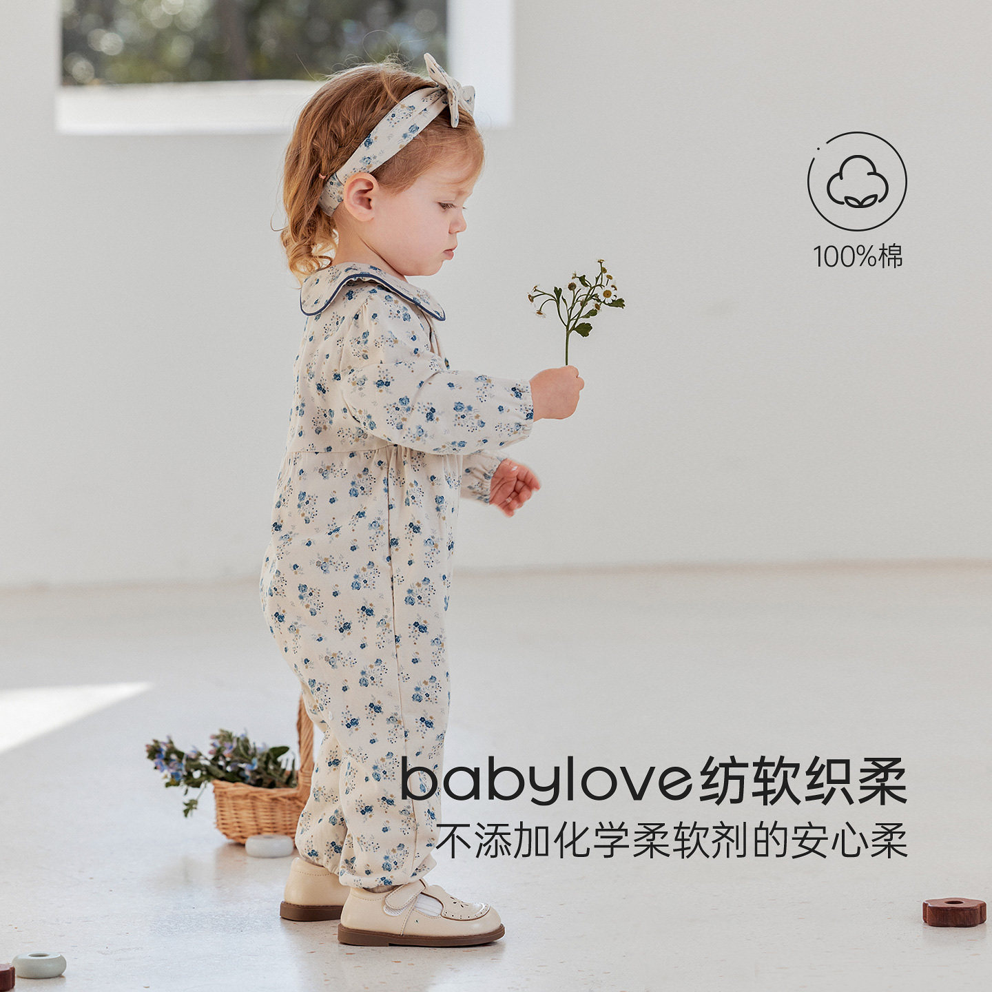 babylove【安心柔】女宝宝连体衣婴儿纯棉春秋外出哈衣觅寻花畔