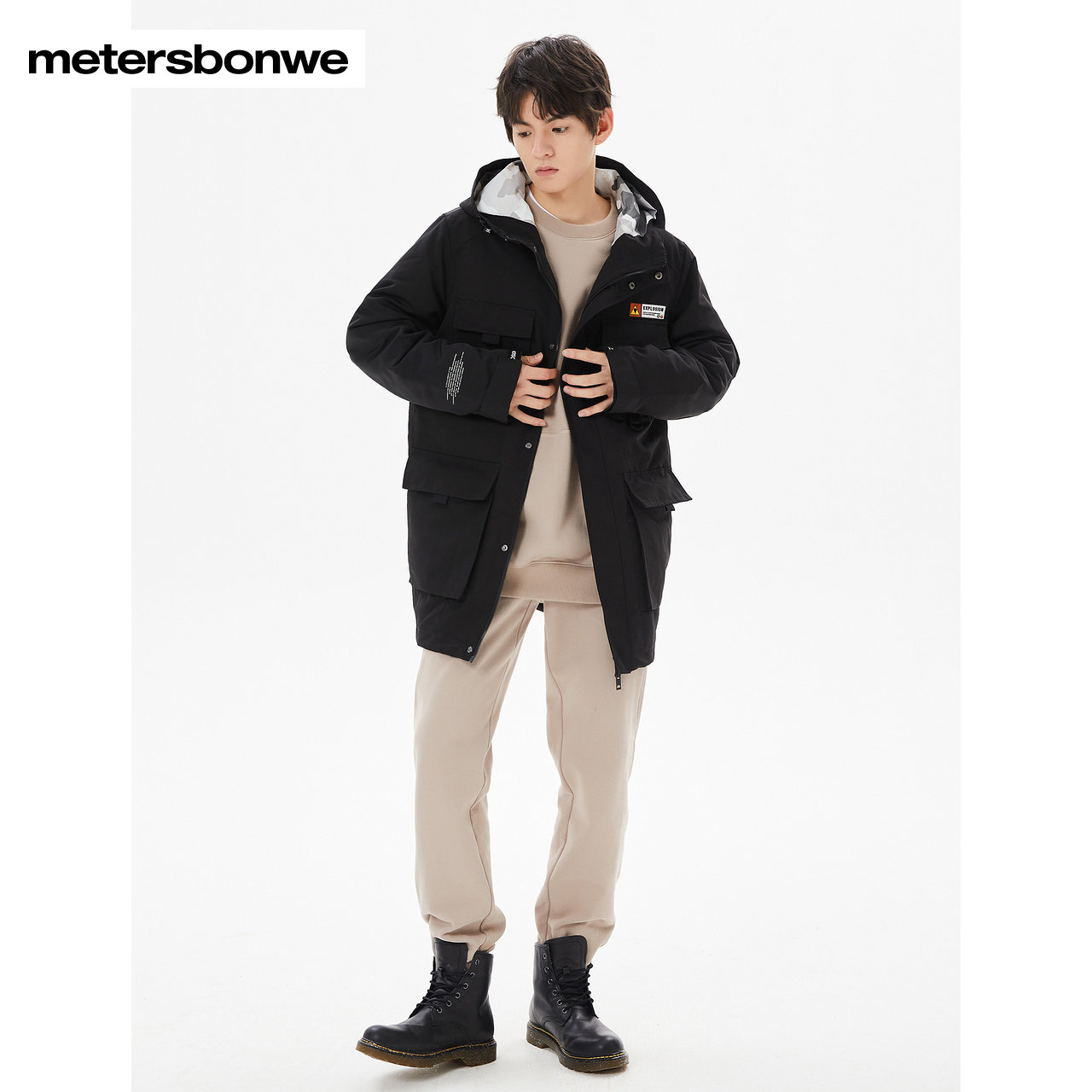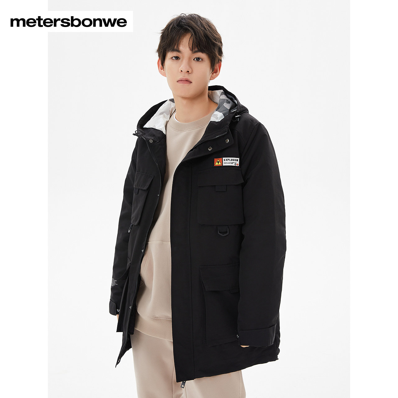 美特斯邦威棉服春季工装连帽可脱卸内胆棉褛男士保暖时尚舒适百搭