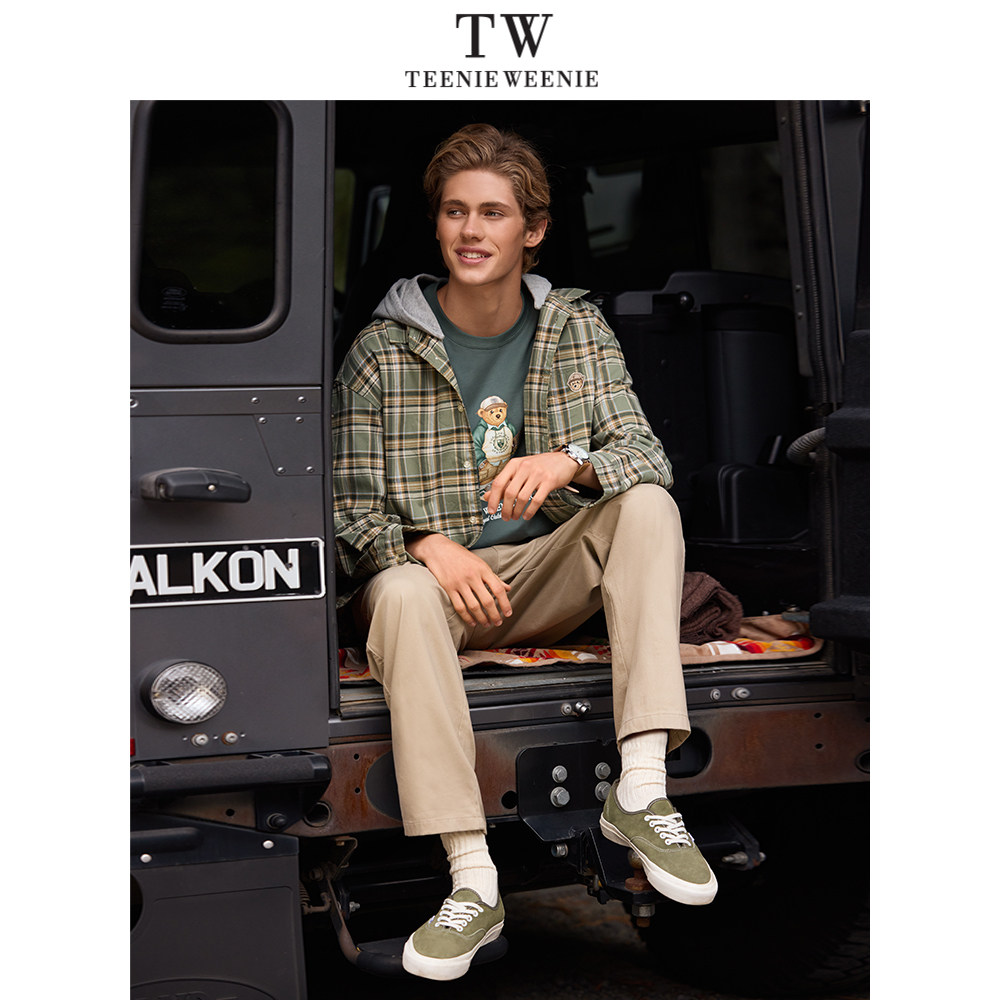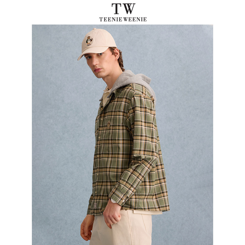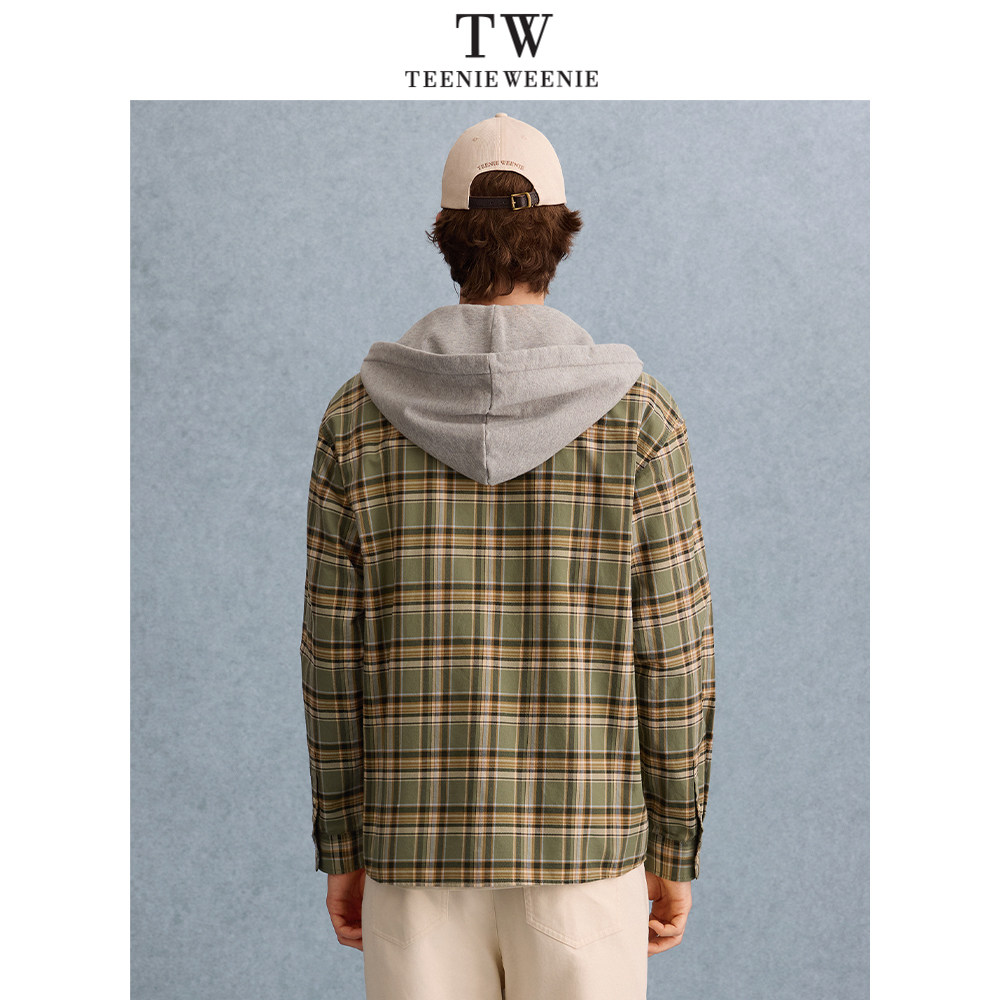 TeenieWeenie小熊男装衬衫2025春季新款学院设计感可拆卸连帽衬衣