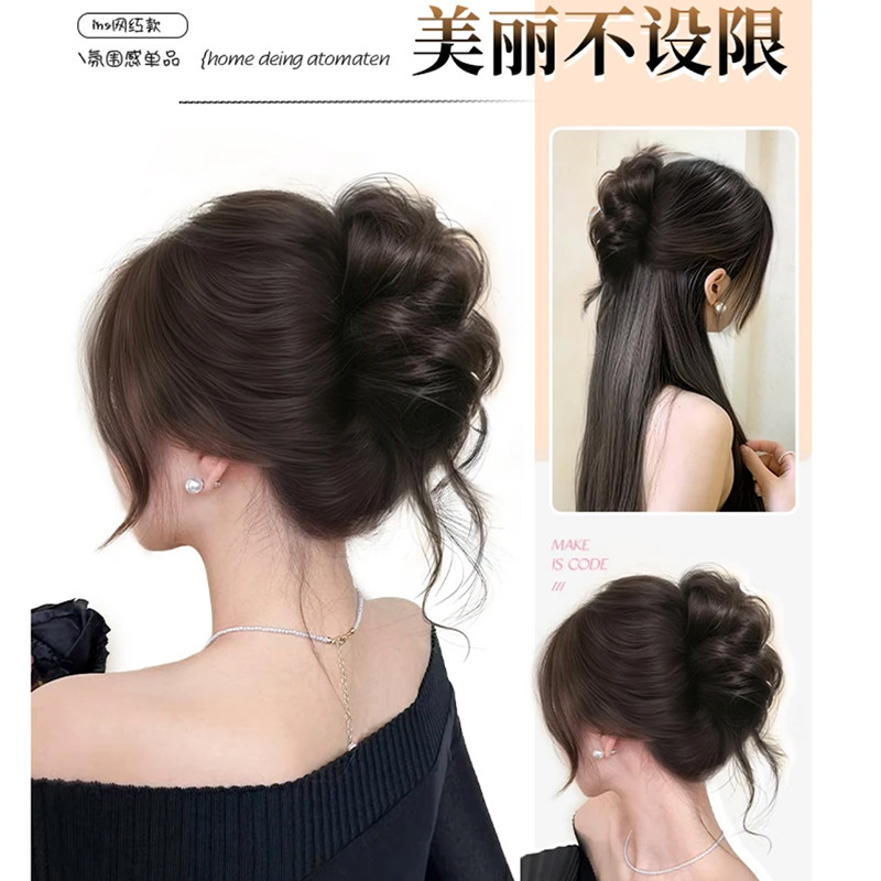丸子头假发抓夹千金花苞头气质盘发神器仿真发网红高颅顶中式发夹