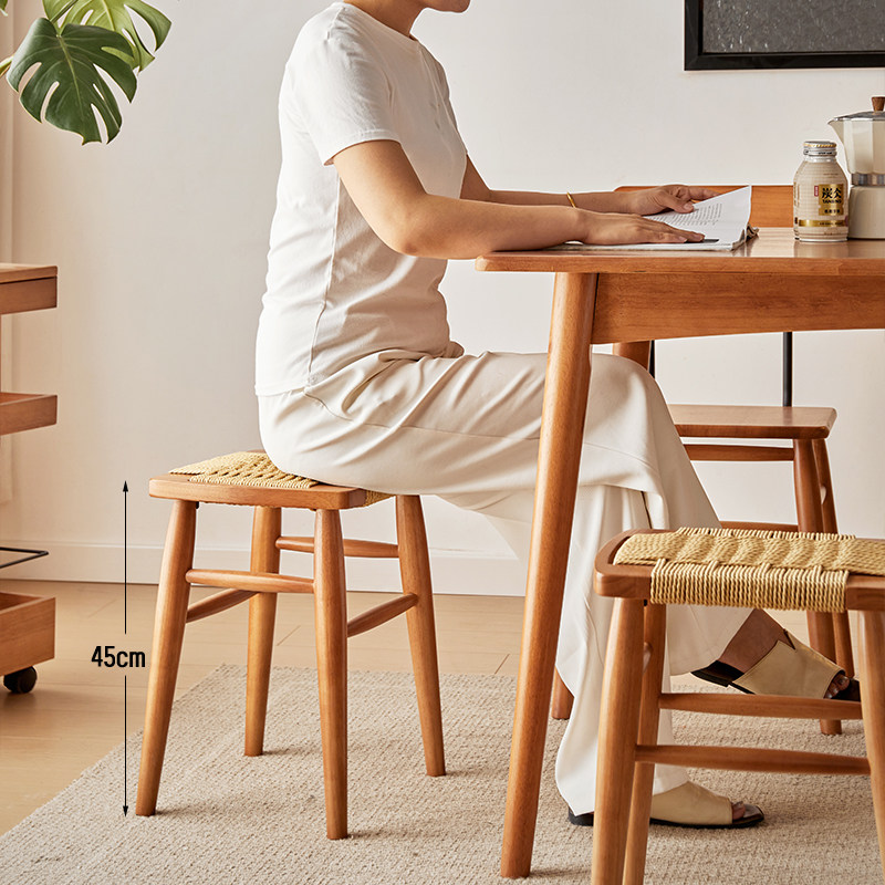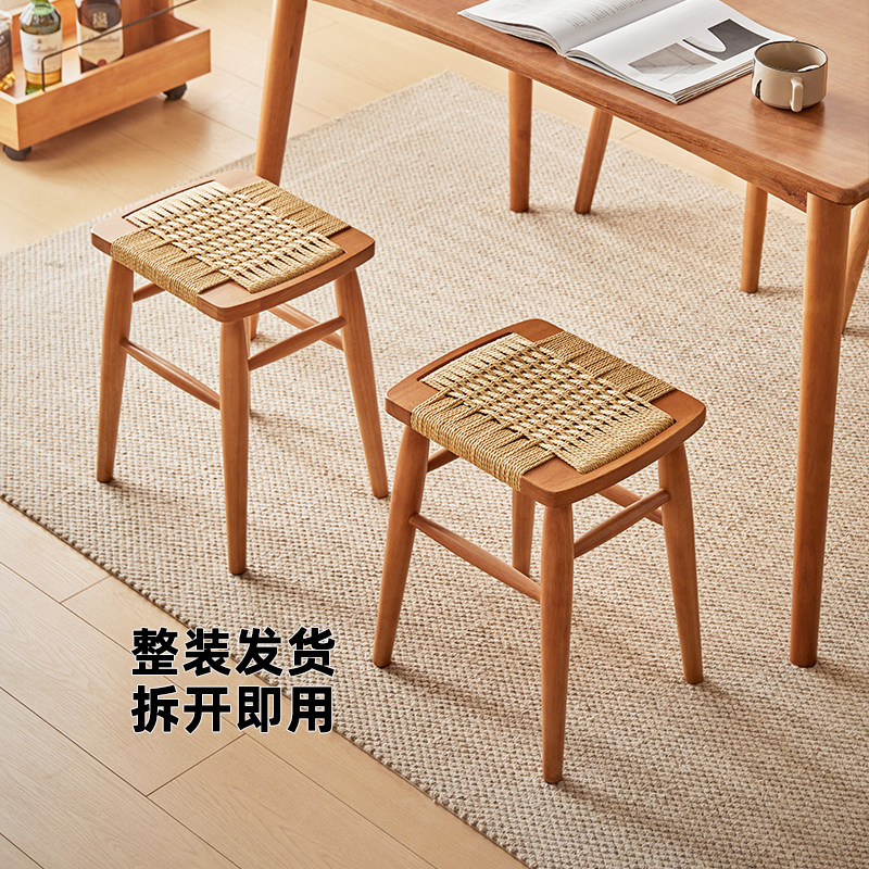 绳编换鞋凳全实木高凳餐凳梳妆凳餐厅椅子方凳子板凳樱桃木色整装
