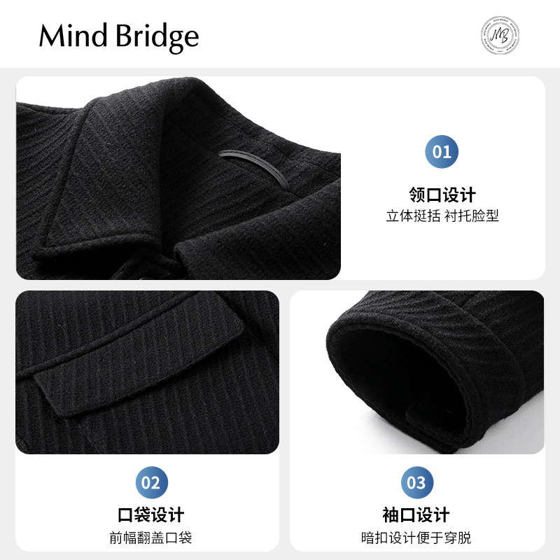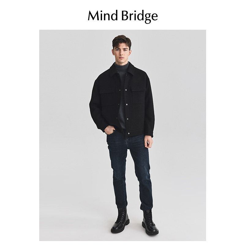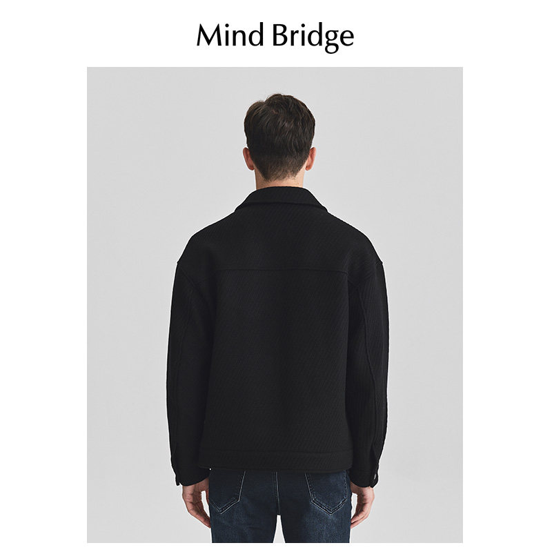 MindBridge男士翻领羊毛外套肌理感上衣2025年秋黑色短款毛呢大衣
