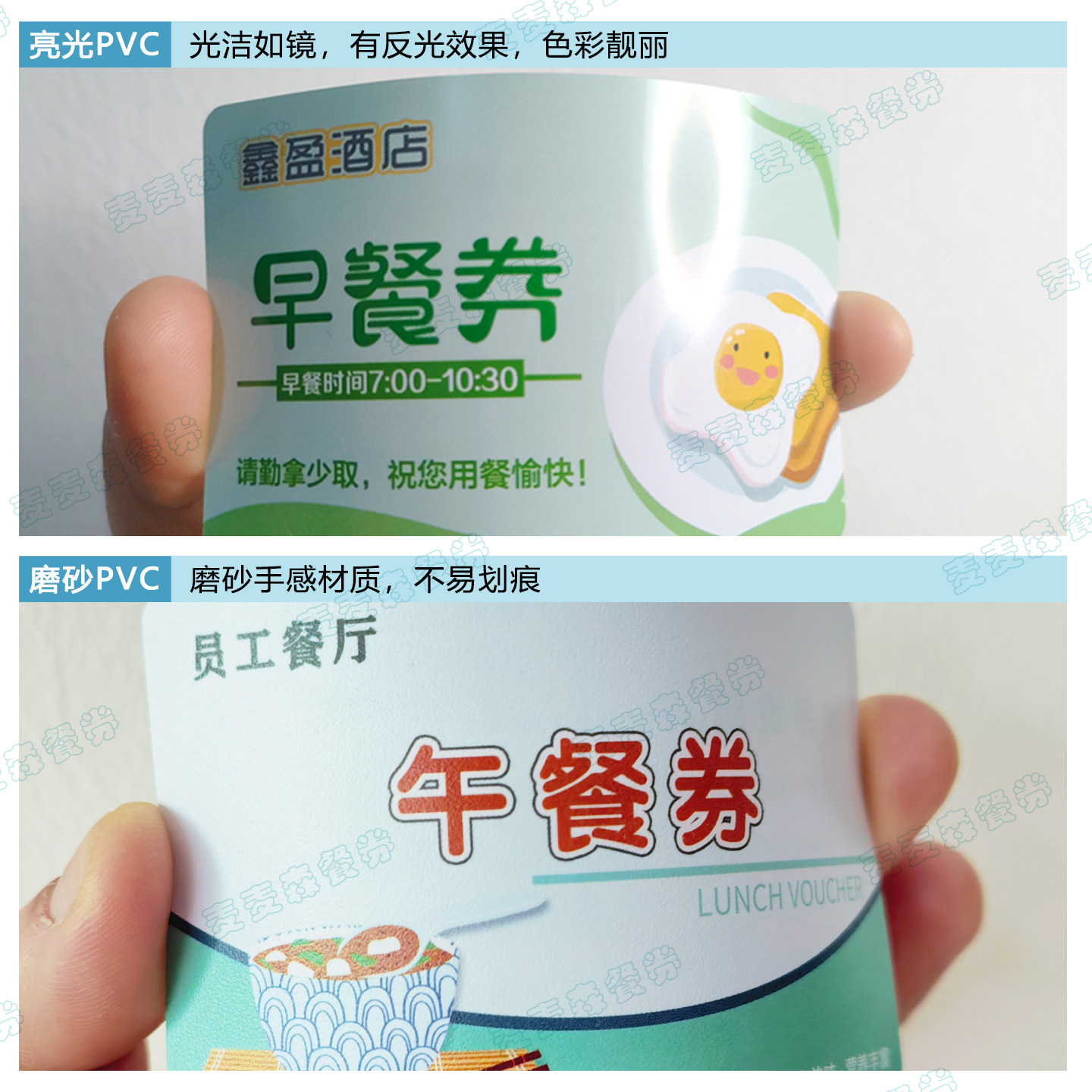定制设计印刷防水防油PVC酒店早餐券食堂耐用饭卡塑料员工就餐票