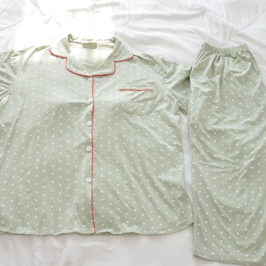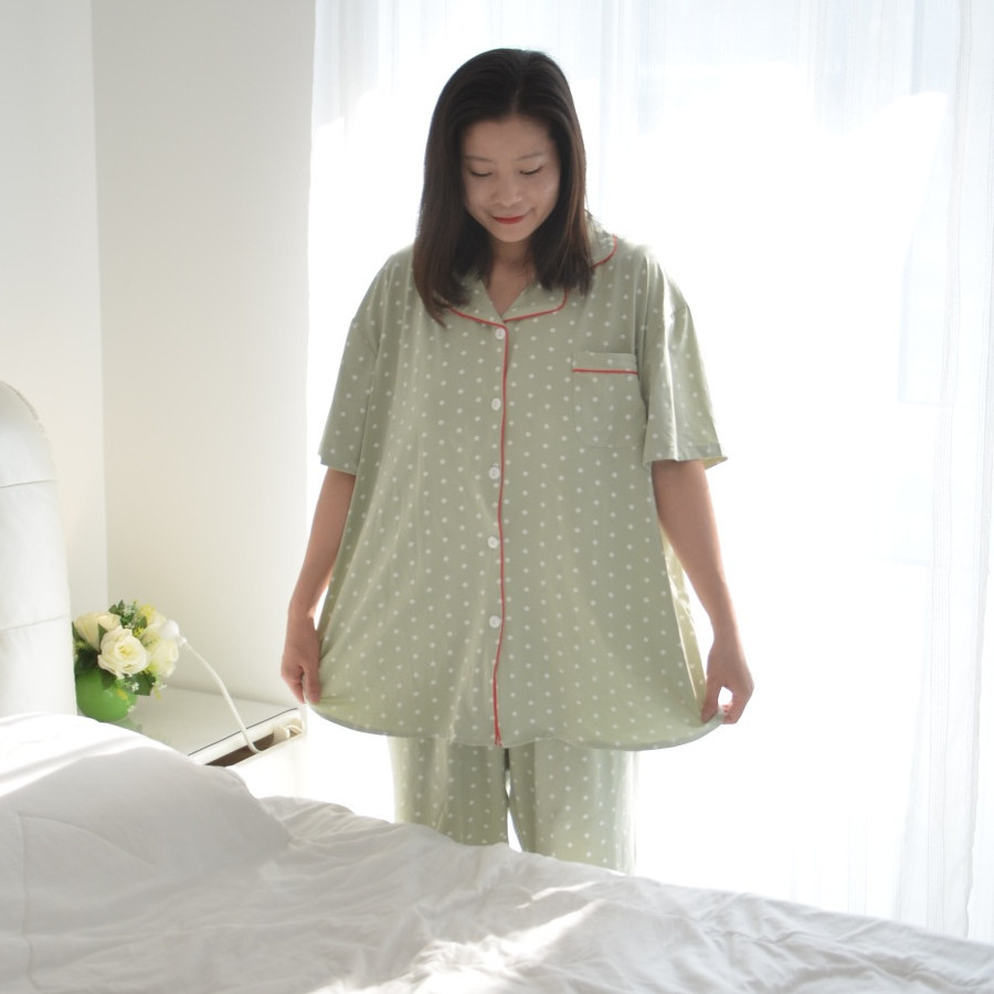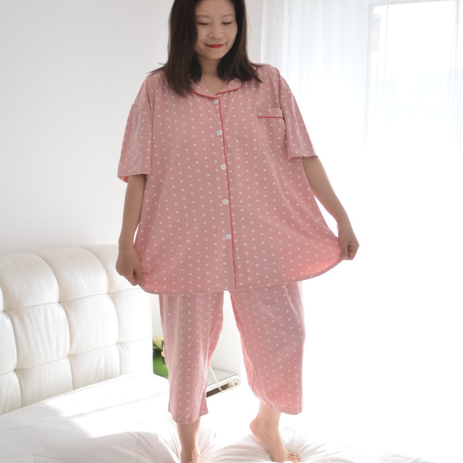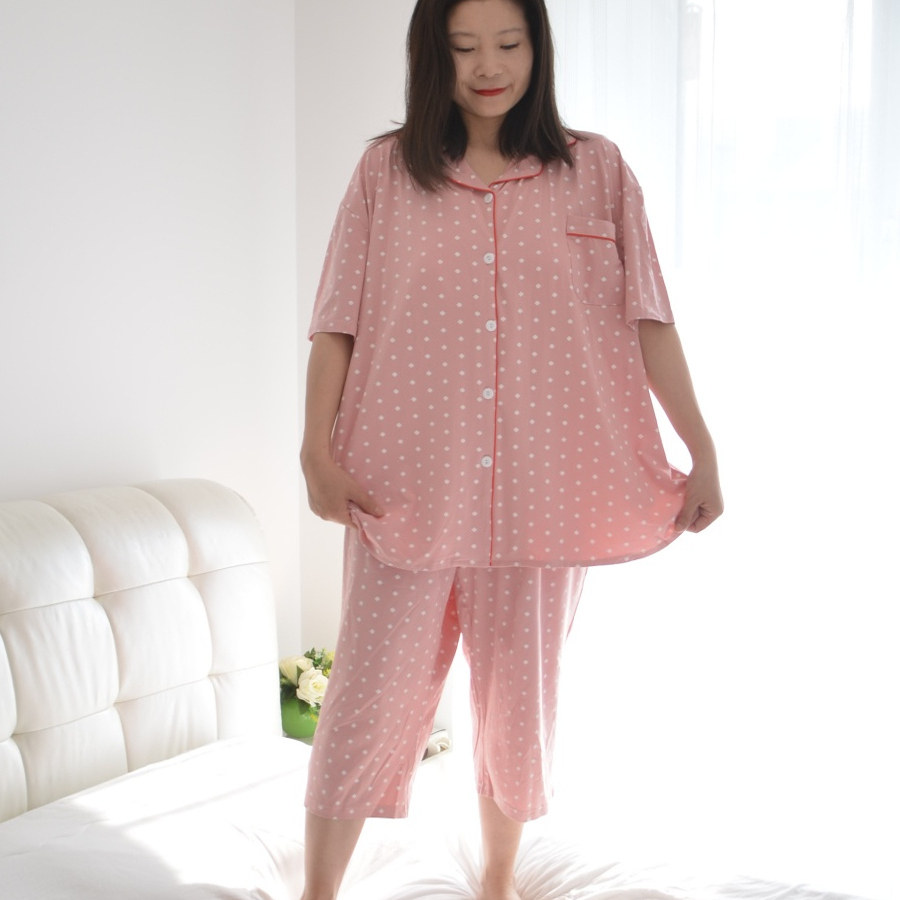 200斤加肥大码短袖七分裤带胸垫睡衣女胖MM夏季莫代尔开衫家居服