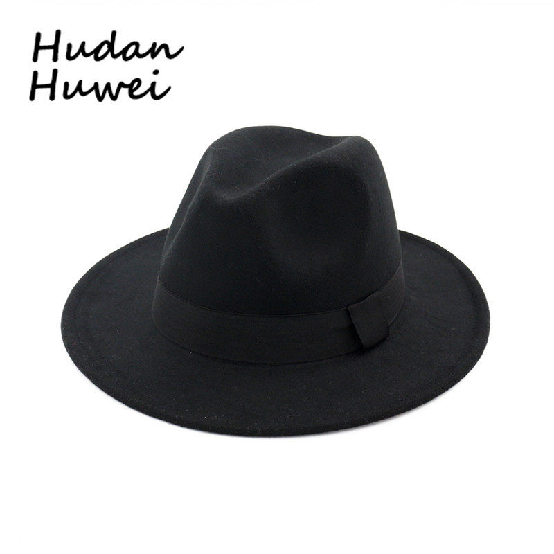 秋冬新款情侣帽子黑色礼帽欧美英伦风平沿爵士帽毛呢帽子