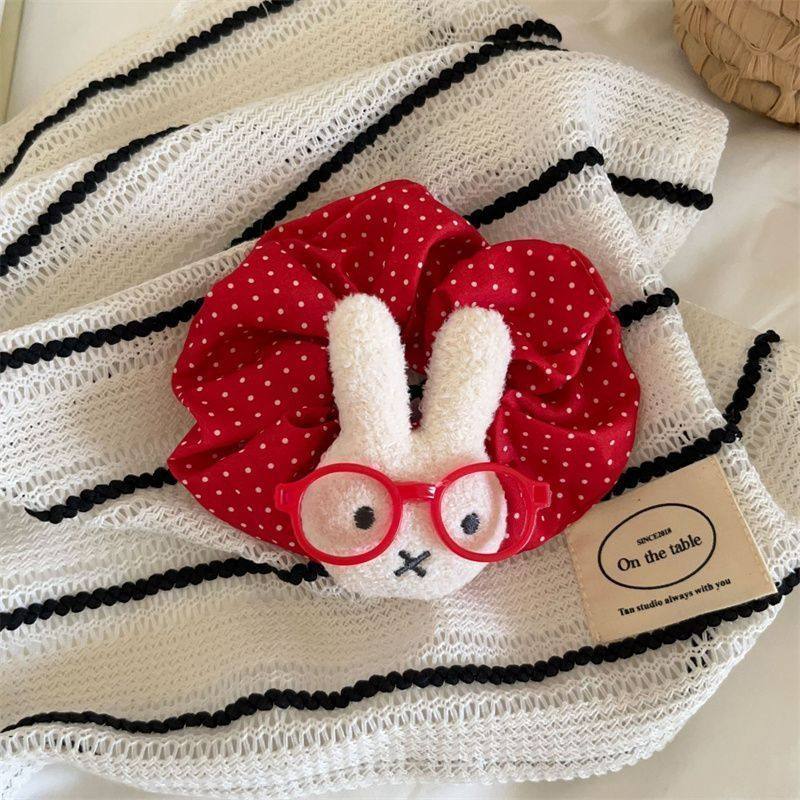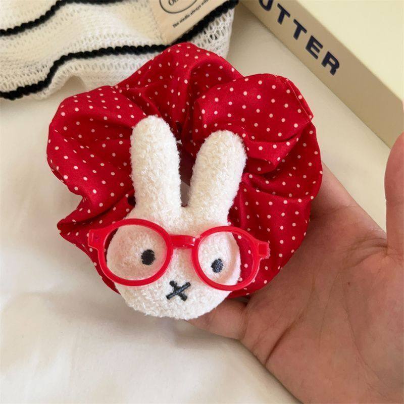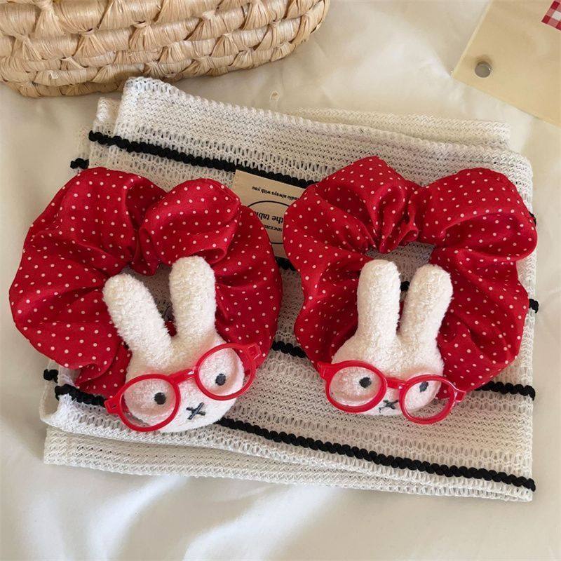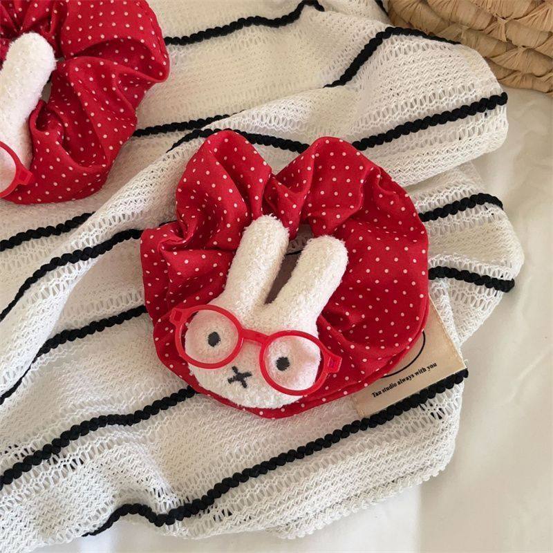 呆萌戴眼镜米菲兔显白红色波点发圈大肠圈扎马尾皮筋头绳少女心