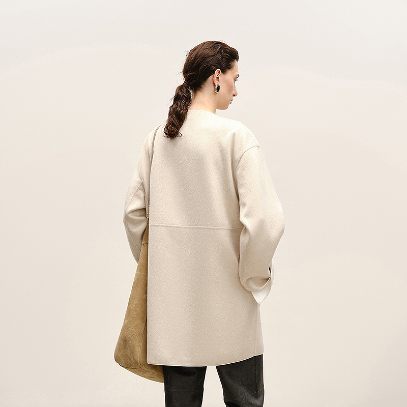 MPAM绵羊毛羊绒双面呢大衣时尚气质立领羊毛外套女
