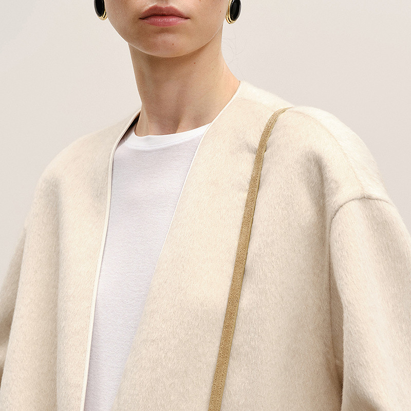 欧洲站披肩围巾苏丽羊驼绒双面羊绒毛呢大衣外套女中长款2025冬季