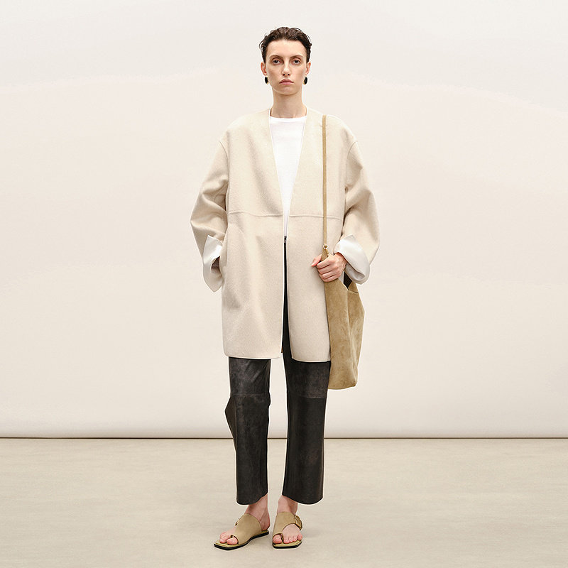 RUISHI芮时重磅驼绒桑蚕丝羊毛慵懒两穿领灰色毛呢大衣秋冬外套女