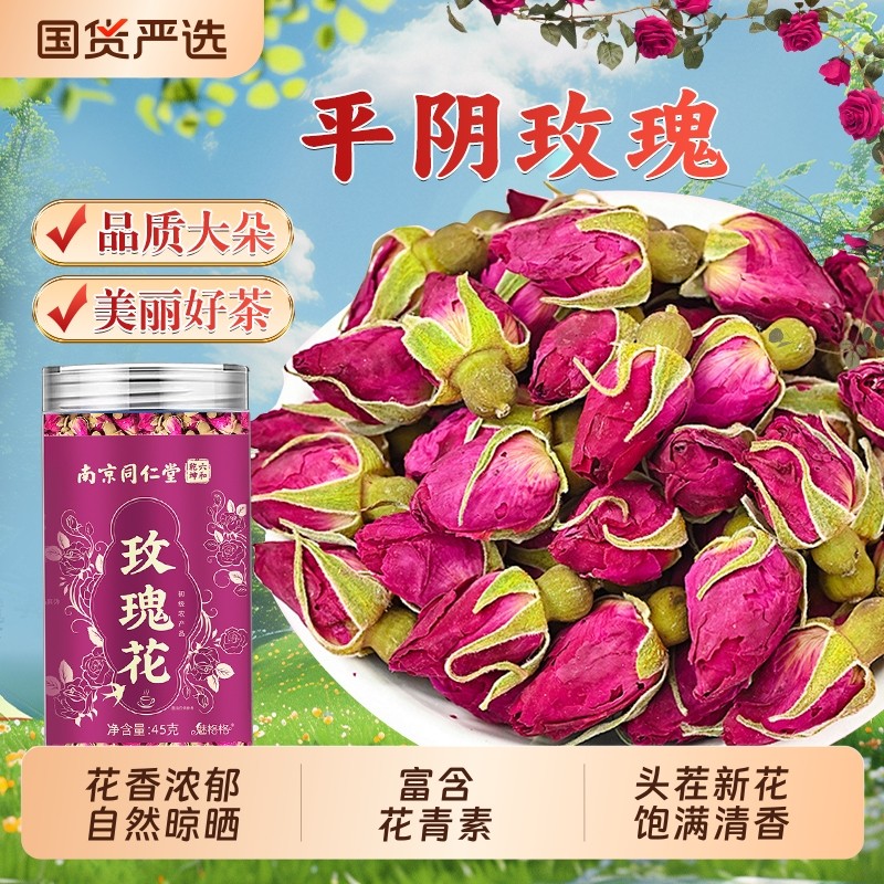 南京同仁堂玫瑰花茶平阴玫瑰大朵无熏硫重瓣茉莉花茶魅格格bz胎菊