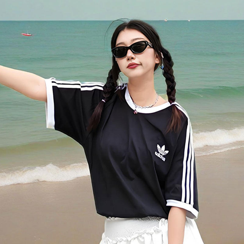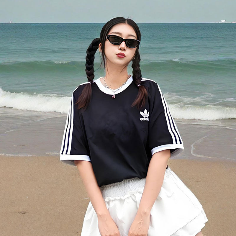 adidas阿迪达斯三叶草运动T恤女纯棉短袖夏季情侣装宽松黑色上衣
