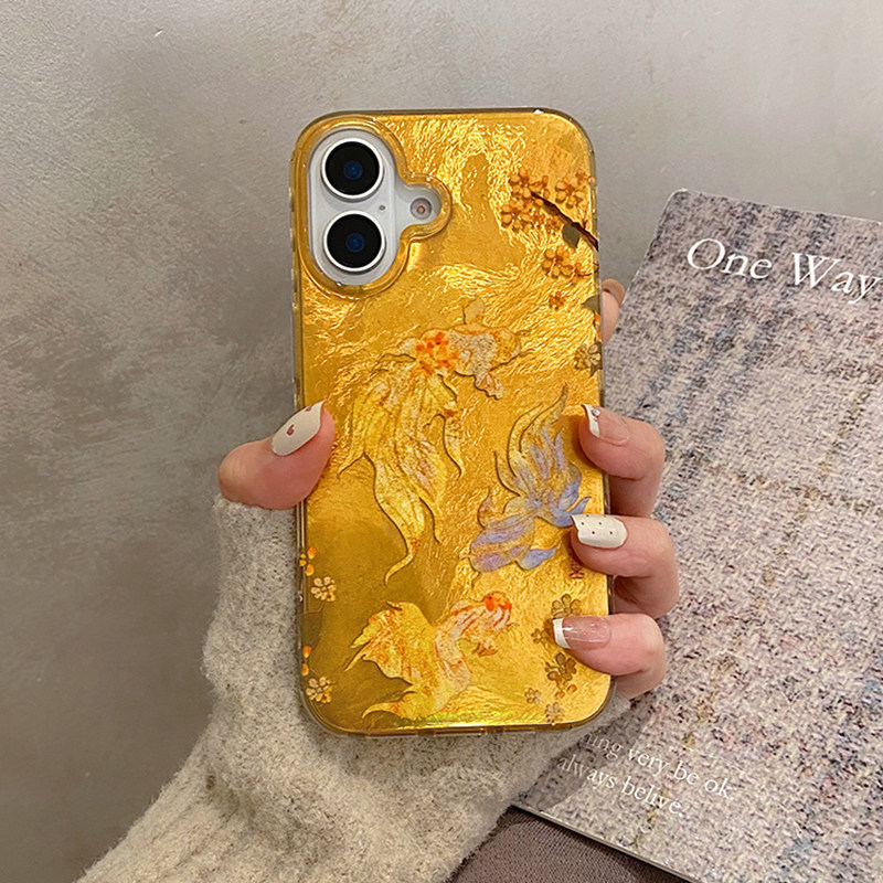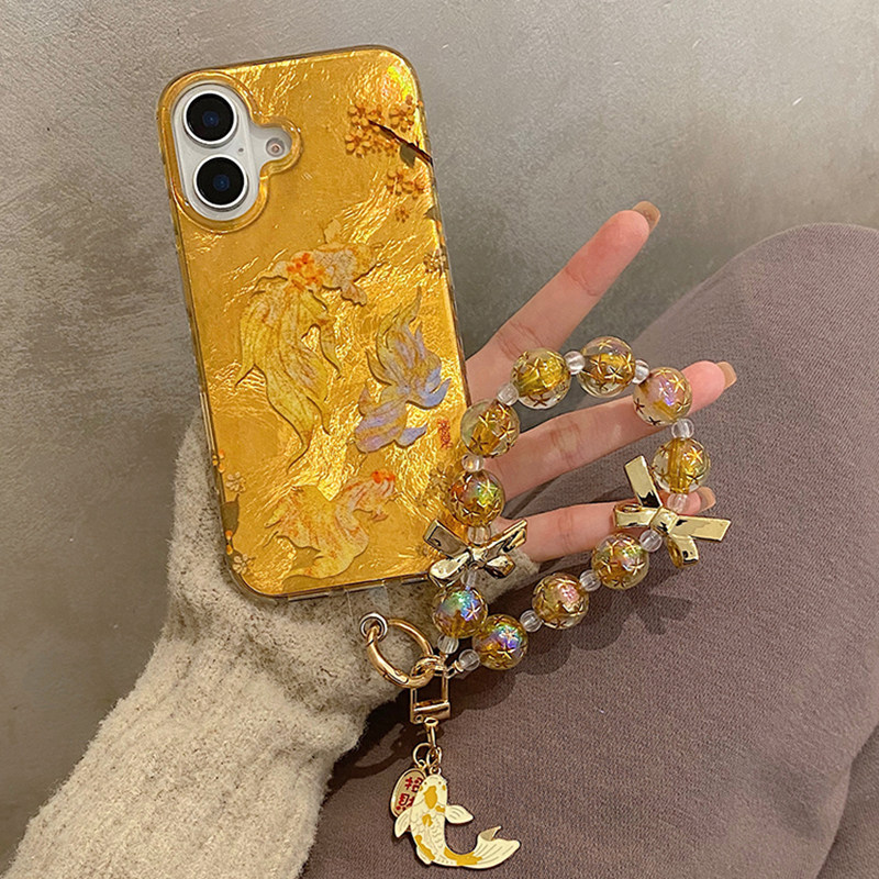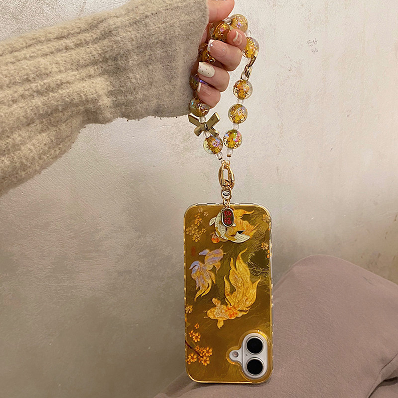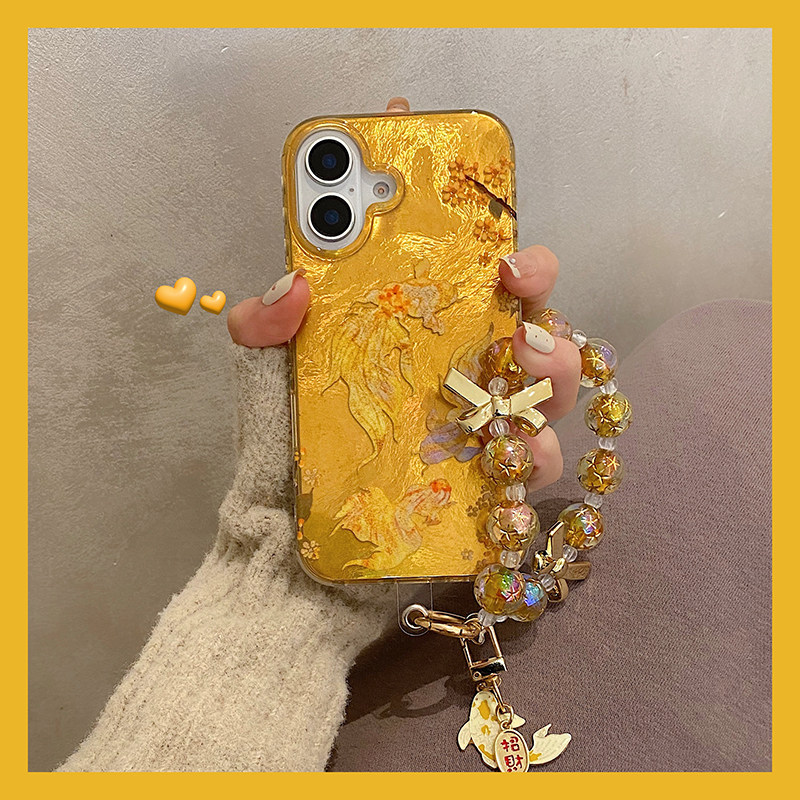 新年喜庆海棠花朵锦鲤手链适用iphone16pro手机壳苹果15保护套14全包防摔13新款16promax链条max女款新年国风