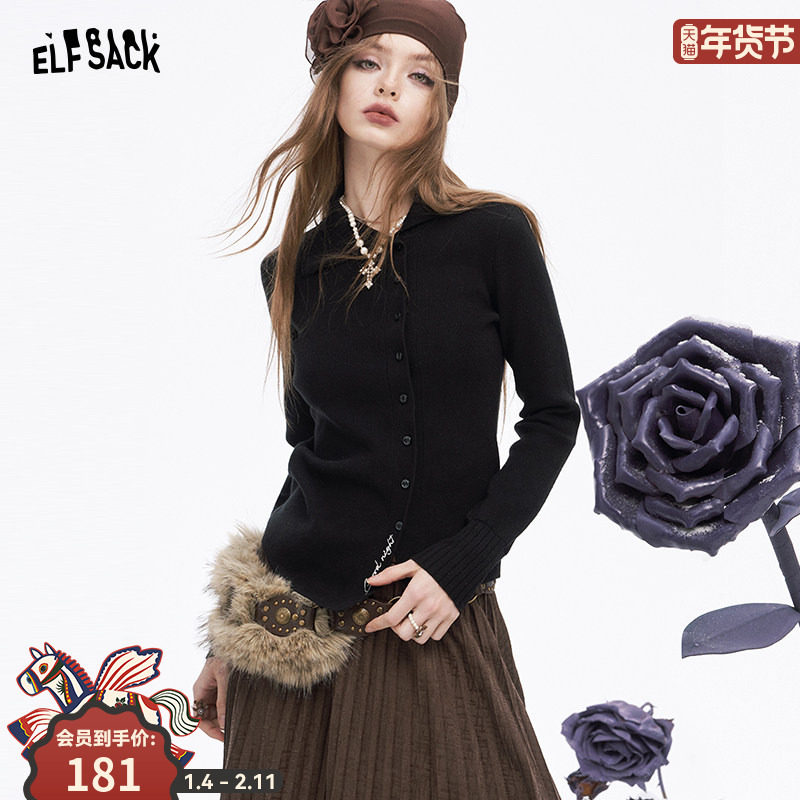 妖精的口袋不规则刺绣修身针织衫女2025冬季新款韩系内搭气质上衣