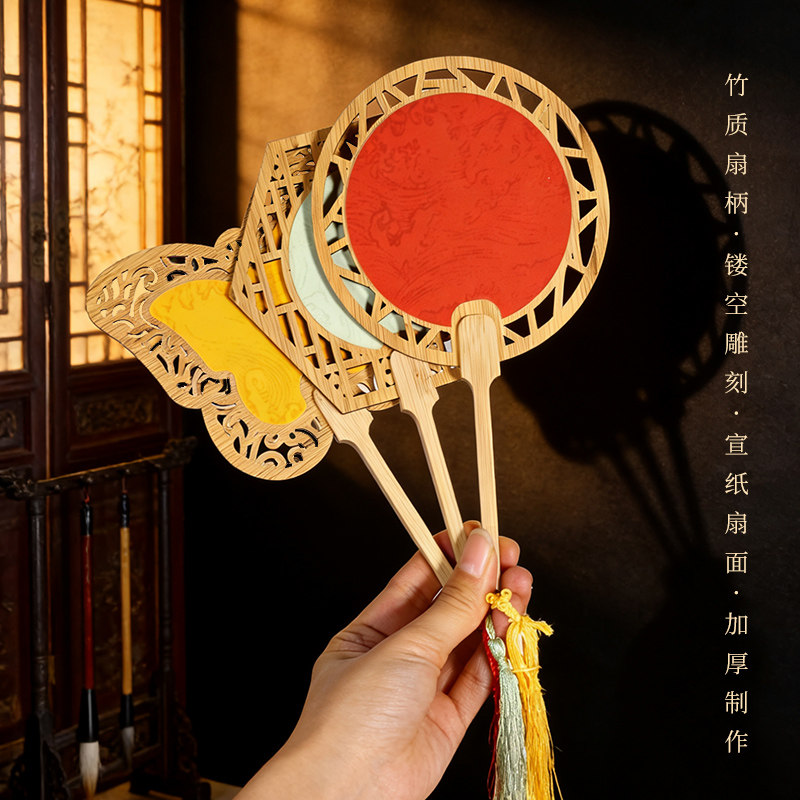 宣艺斋木质镂空宫廷团扇中式古韵古香质感工艺品书法国画宣纸扇摆件文创古朴文艺禅意扇子圆形宣纸团扇批发
