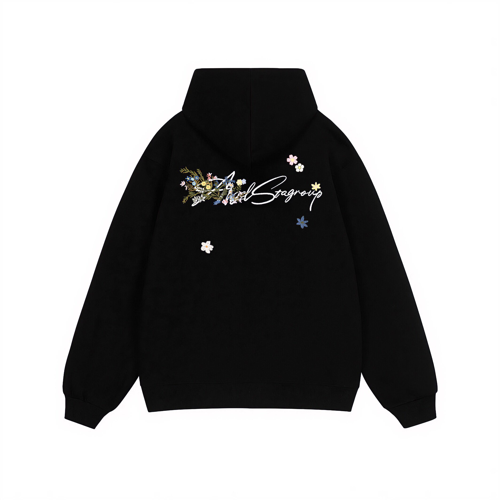 STA旗舰店美式花卉刺绣连帽卫衣男女潮牌复古高街重磅情侣外套