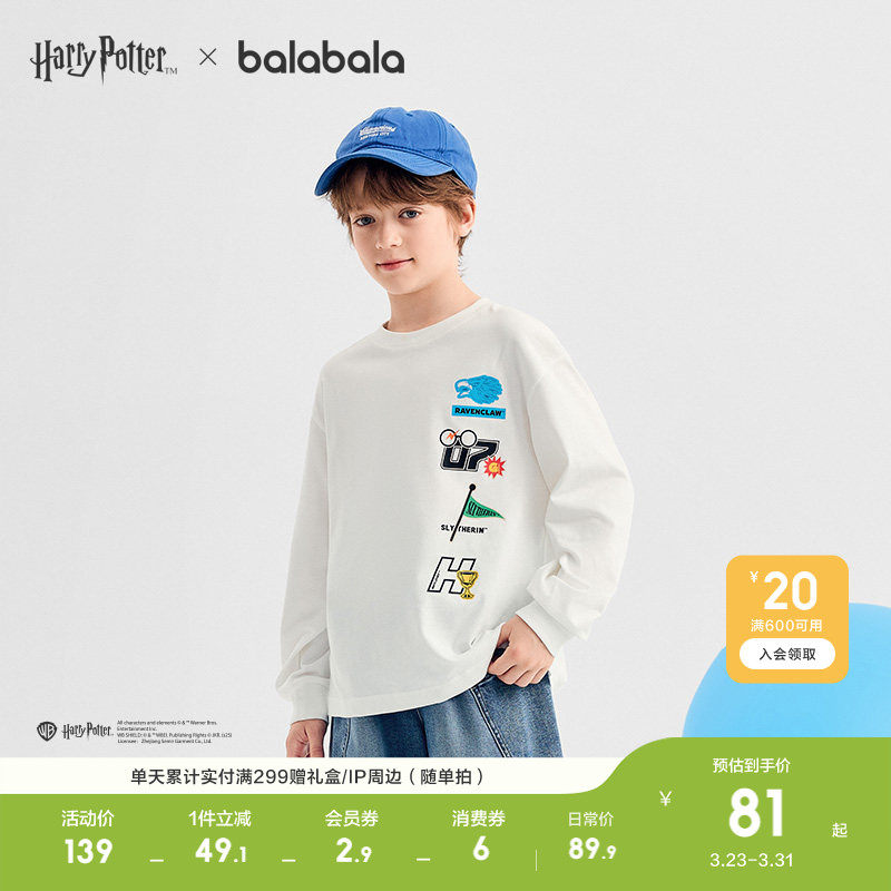 【哈利波特IP】巴拉巴拉童装男童长袖t恤儿童打底春秋装上衣时尚