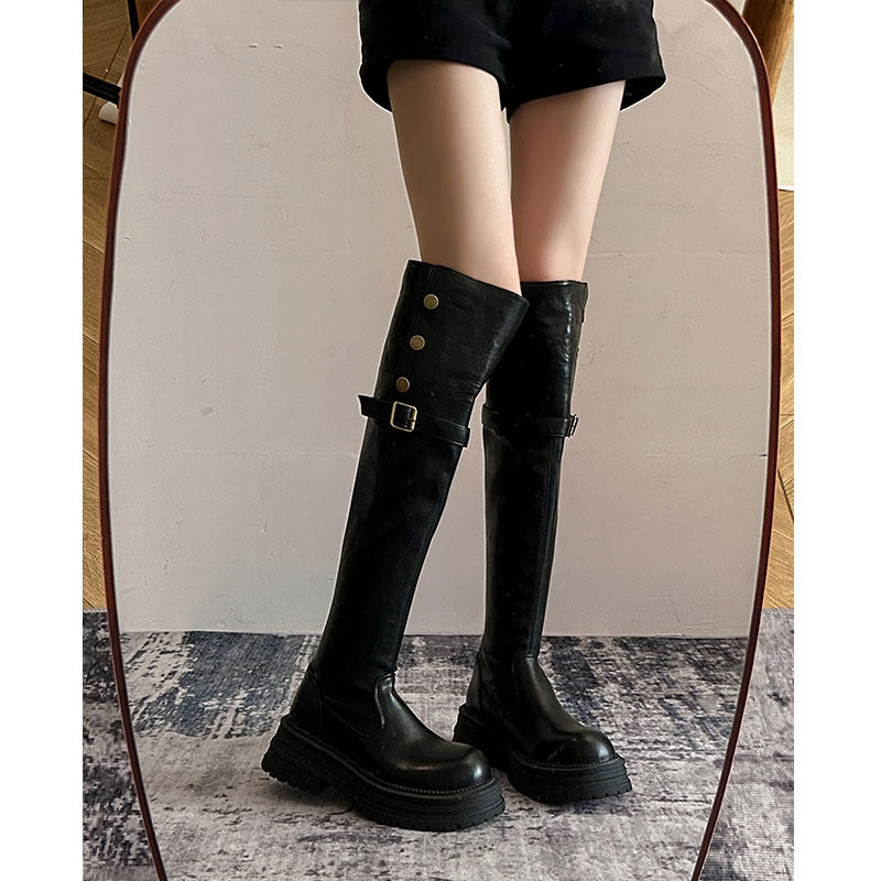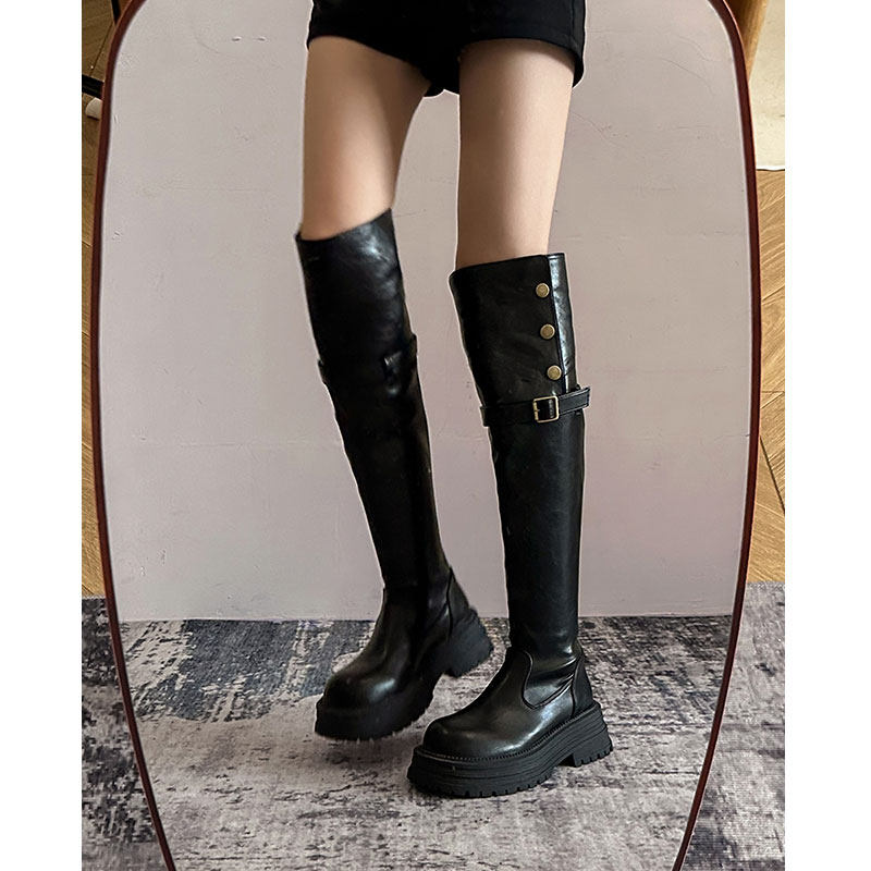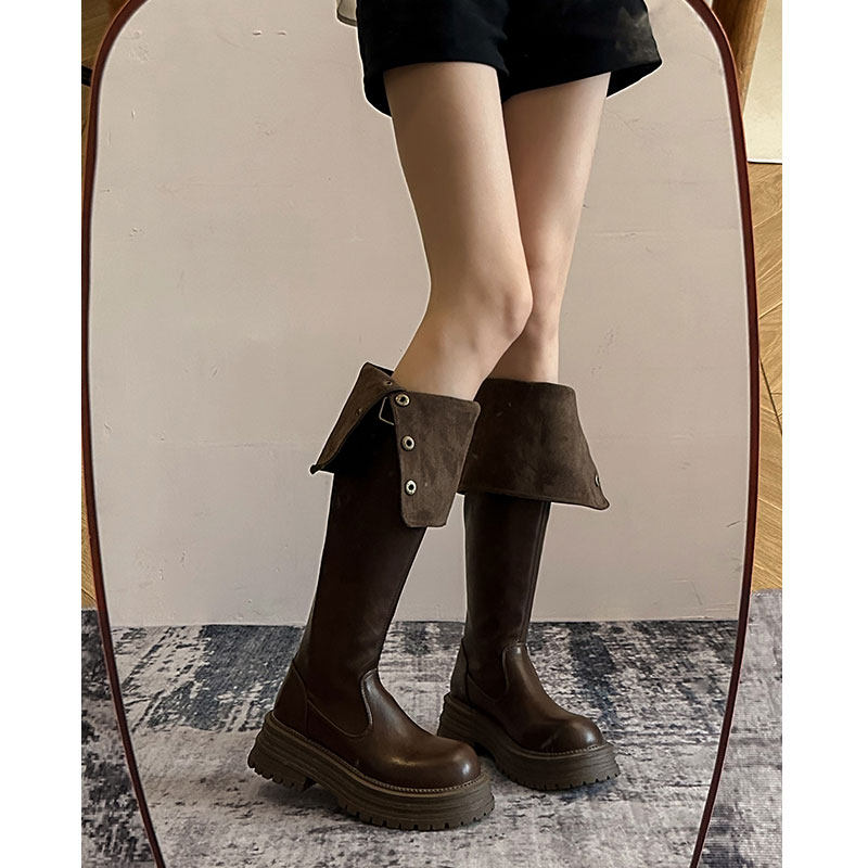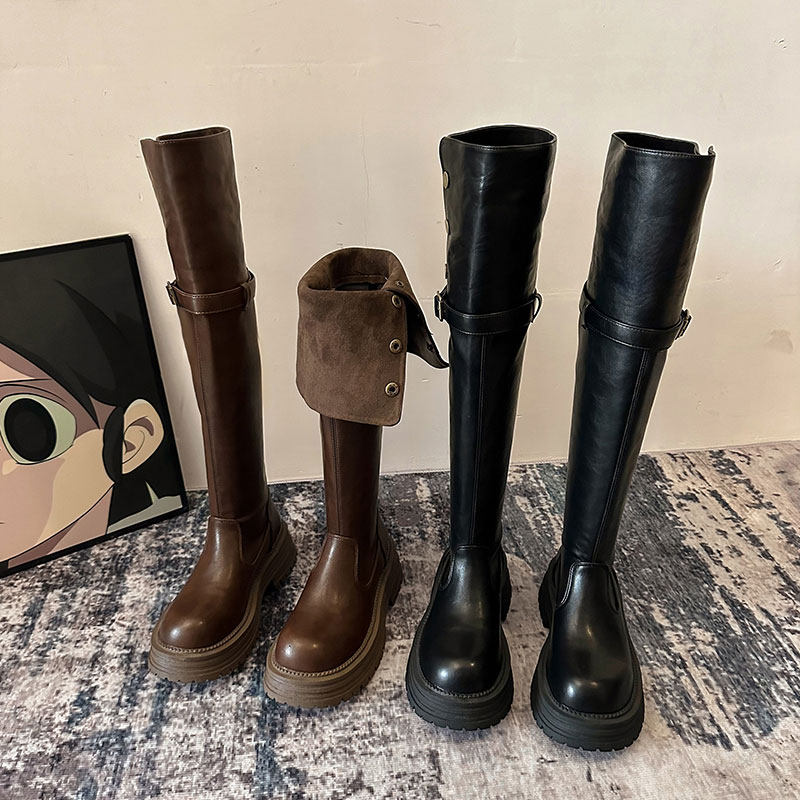 翻折两穿过膝厚底高筒骑士靴女2025秋冬新款粗跟单靴长筒靴瘦瘦靴