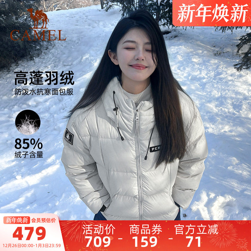 骆驼企鹅户外羽绒服女冬小个子新款防风保暖短款面包服冬装厚外套