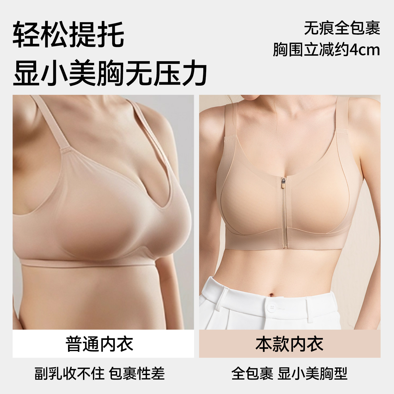 束胸内衣女大胸显小胸薄款全罩杯无痕收副乳聚拢上托防下垂文胸罩